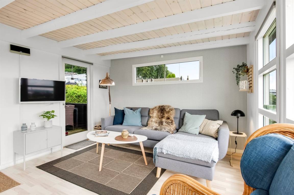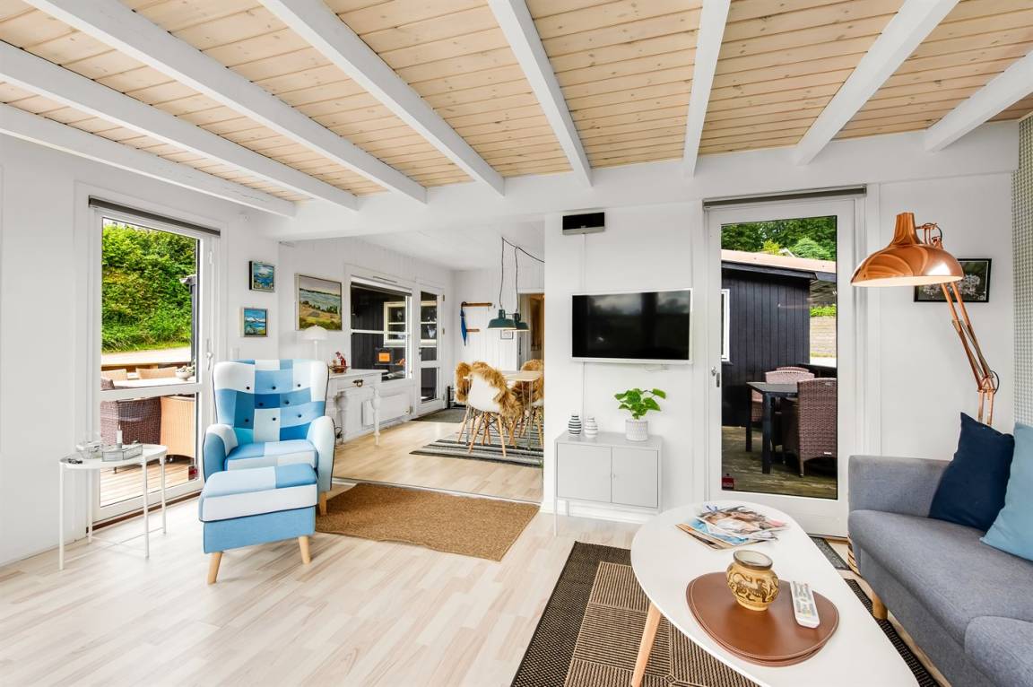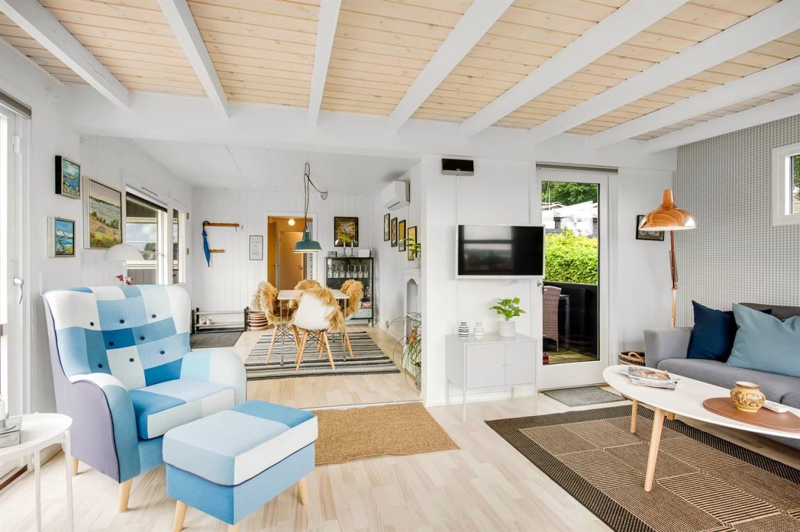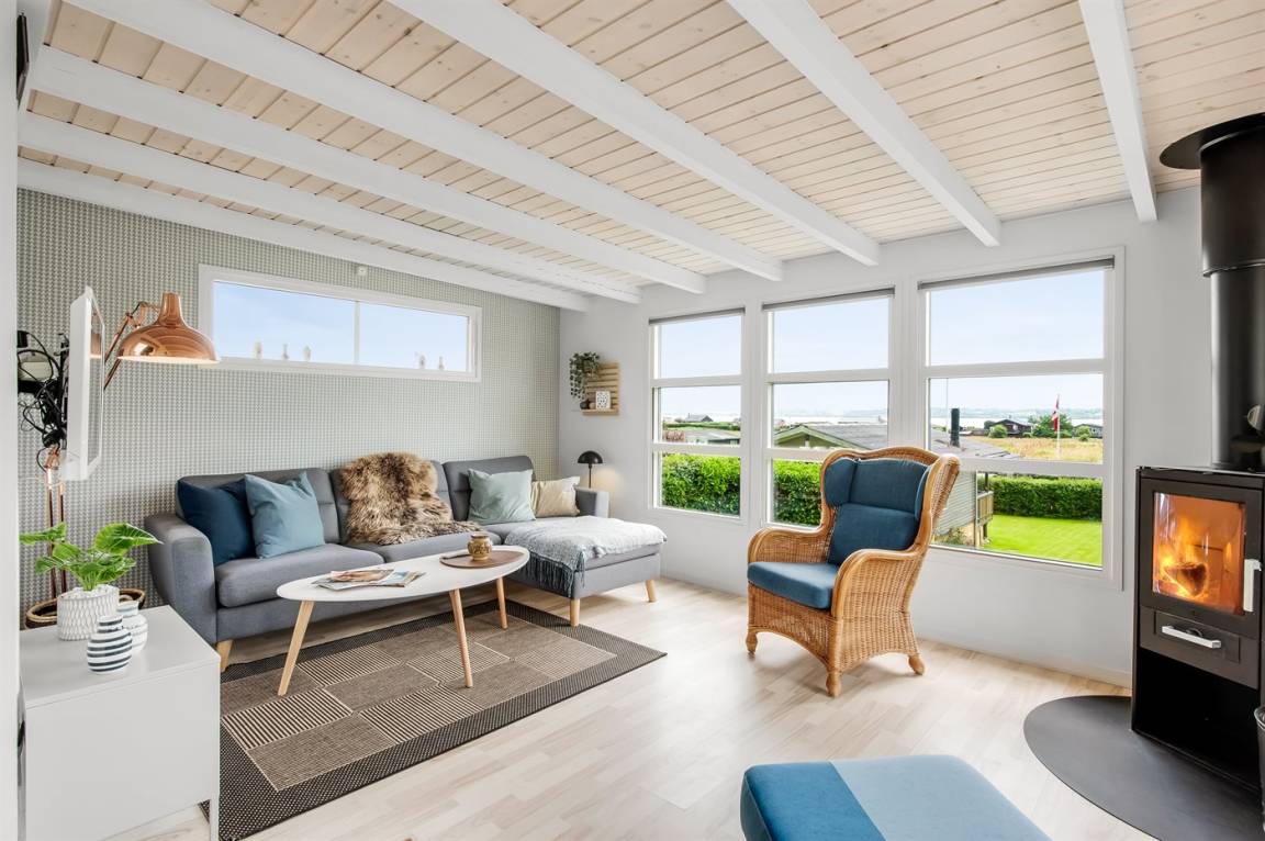 Ein gemütliches und gut gepflegtes Ferienhaus mit schönem Ausblick aufs Meer – nur etwa 300 Meter von einem kinderfreundlichen Badestrand entfernt.