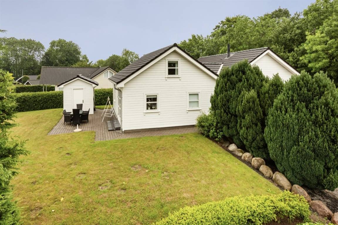 DraußenDie Ferienunterkunft liegt auf einem 935 m² großen Gartengrundstück. Die Entfernung zum Meer beträgt 175 m. Es gibt einen Badesteg in der Nähe. Die nächste Einkaufsmöglichkeit liegt 5800 m entfernt. In einem Abstand von 6000 m gibt es einen Golfplatz. Es steht ein offenes Terrassenareal zur Verfügung. Außerdem gibt es überdachte Terrasse. Es steht ein Grill zur Verfügung. Parkplatz auf dem Grundstück.