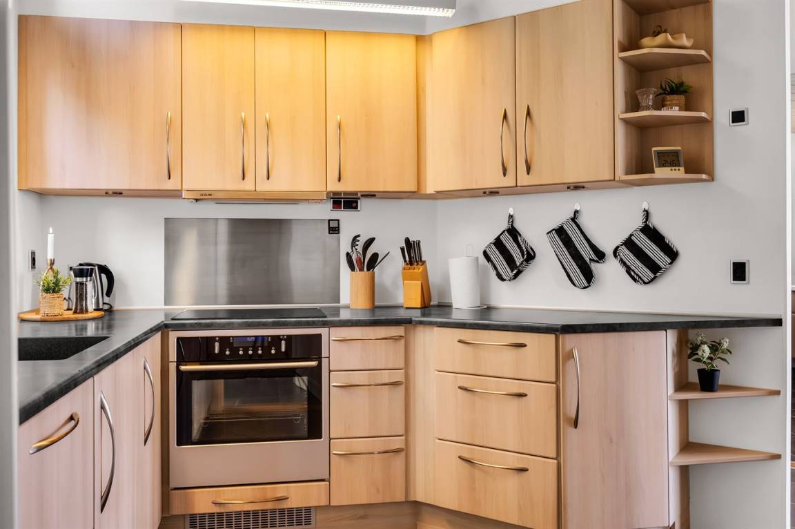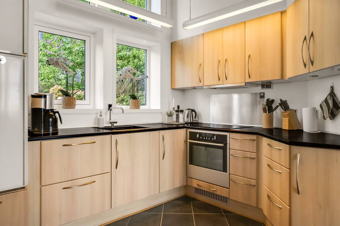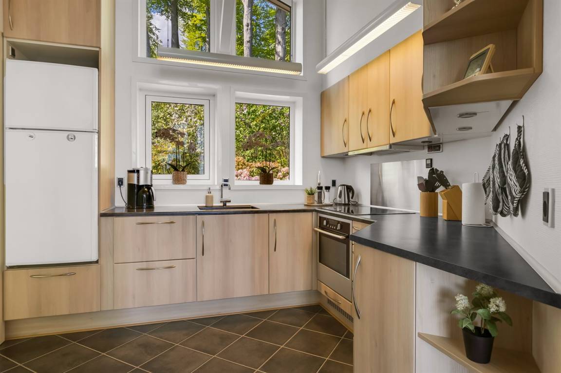 KücheDie Küche ist mit Kühlschrank ausgestattet. Außerdem gibt es 4 Induktions-Kochzonen, Umluftofen sowie Geschirrspüler.