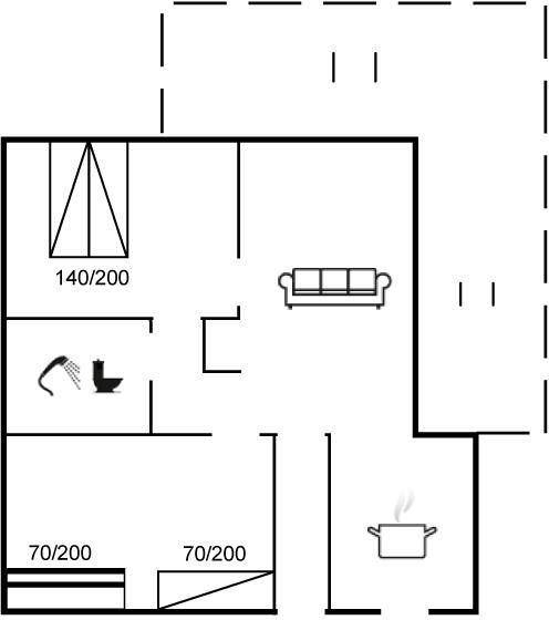 SchlafverhältnisseDie Schlafplätze verteilen sich auf 2 Schlafräume. 2 Schlafplätze in einem Doppelbett.1 Schlafplatz in einem Einzelbett. 2 Schlafplätze in einem Etagenbett. Ferner steht ein Kinderbett zur Verfügung.