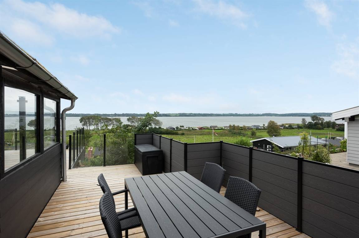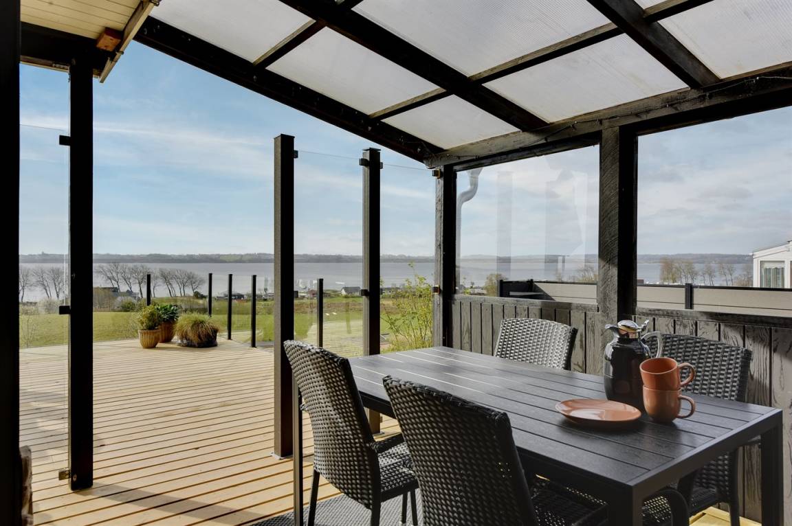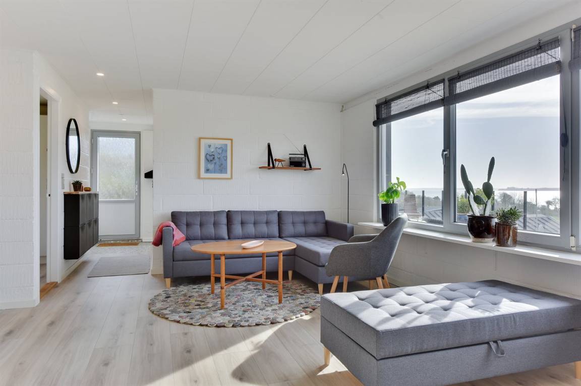 Mit einer phantastischen Aussicht auf den Fjord liegt dieses ganz besonders gemütliche und hell eingerichtete Ferienhaus. Übrigens: Zusätzlich zu den 2 Schlafzimmern gibt es 2 Schlafplätze auf einer Doppelschlafcouch im Wohnzimmer.