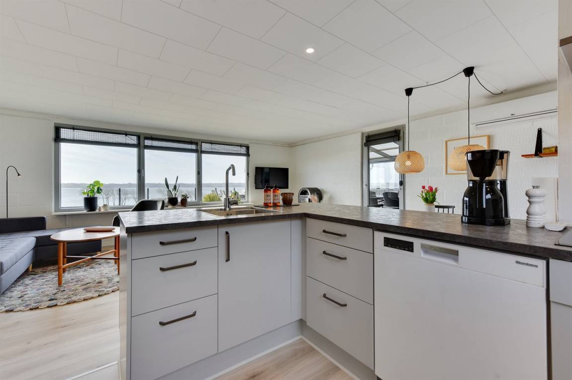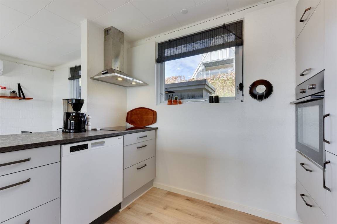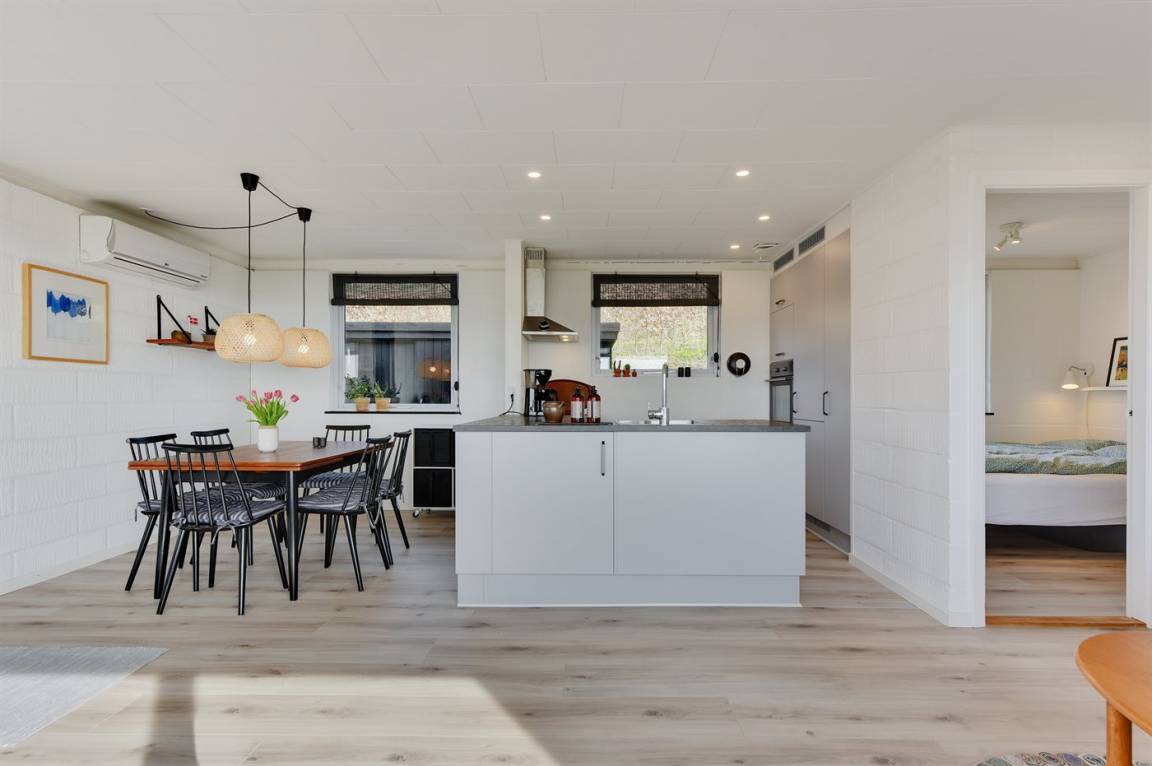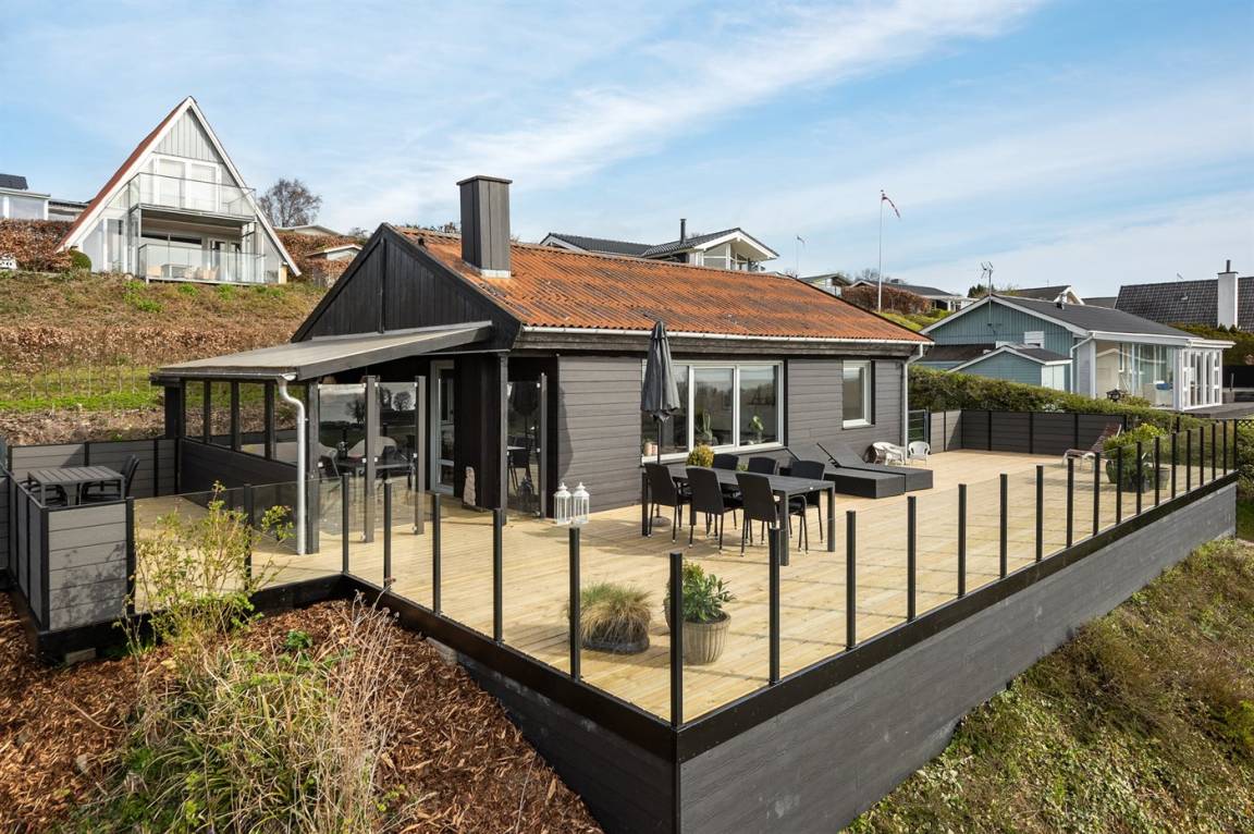 Mit einer phantastischen Aussicht auf den Fjord liegt dieses ganz besonders gemütliche und hell eingerichtete Ferienhaus. Übrigens: Zusätzlich zu den 2 Schlafzimmern gibt es 2 Schlafplätze auf einer Doppelschlafcouch im Wohnzimmer.