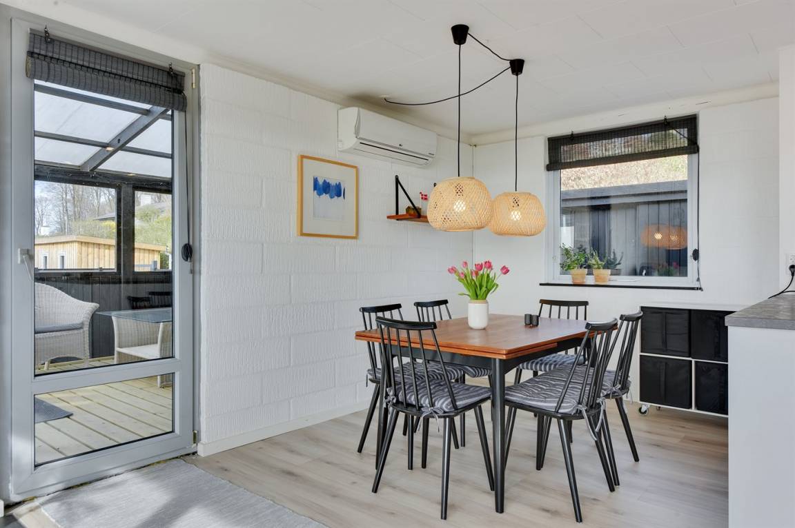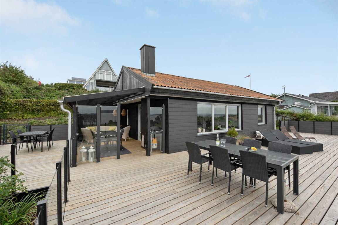 DraußenDie Ferienunterkunft liegt auf einem 600 m² großen Naturgrundstück. Die Entfernung zum Fjord beträgt 330 m. Die nächste Einkaufsmöglichkeit liegt 6000 m entfernt. Außerdem gibt es 15 m² überdachte Terrasse. Davon insgesamt 125 m² geschlossene Terrasse. Die Entfernung zu einem Spielplatz beträgt 300 m. Es steht ein Grill zur Verfügung. Parkplatz auf dem Grundstück.