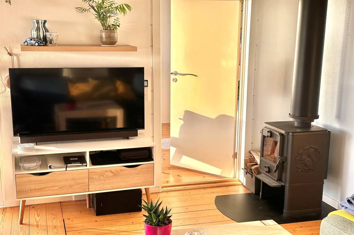 EinrichtungDas Ferienhaus eignet sich für 6 Personen sowie 1 Kleinkind bis zu 3 Jahren. Die Ferienunterkunft hat eine Wohnfläche von 60 m² und wurde 1962 gebaut. 2021 wurde die Ferienunterkunft renoviert. Es ist erlaubt 1 Haustier mitzubringen. Die Ferienunterkunft ist mit energiefreundlicher Luft-Luft- Wärmepumpe ausgestattet. Die Ferienunterkunft ist mit Waschmaschine ausgestattet. Tiefkühlmöglichkeit mit 40 Liter Nutzinhalt. Es gibt außerdem einen Kaminofen. Für die jüngsten Feriengäste ist 1 Kinderhochstuhl vorhanden.