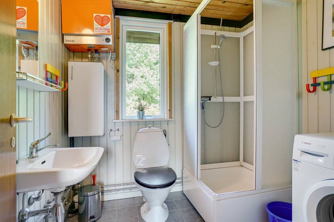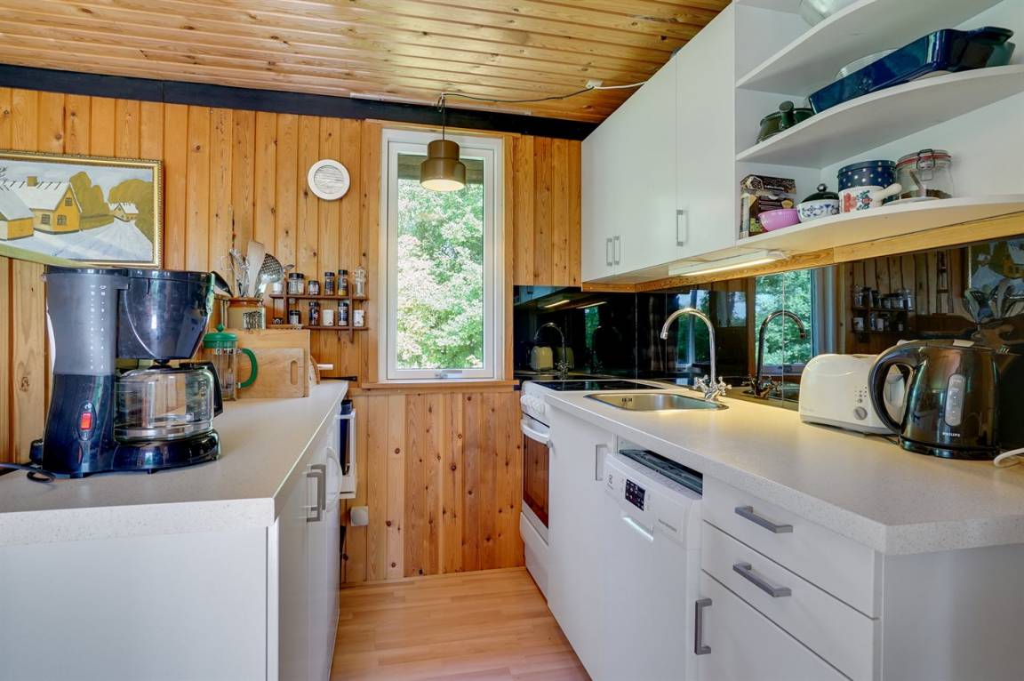 DraußenDie Ferienunterkunft liegt auf einem 2500 m² großen Naturgrundstück. Die Entfernung zum Meer beträgt 25000 m. Die Entfernung zum Fjord beträgt 100 m. Die nächste Einkaufsmöglichkeit liegt 3000 m entfernt. Es steht ein 16 m² Terrassenareal zur Verfügung. Sandkasten. Parkplatz auf dem Grundstück.
