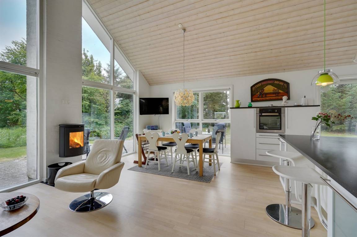 DraußenDie Ferienunterkunft liegt auf einem 5500 m² großen Naturgrundstück. Die Entfernung zum Meer beträgt 15000 m. Die Entfernung zum Fjord beträgt 150 m. Die nächste Einkaufsmöglichkeit liegt 3800 m entfernt. In einem Abstand von 3000 m gibt es einen Golfplatz. Es steht ein 100 m² Terrassenareal zur Verfügung. Außerdem gibt es 18 m² überdachte Terrasse. Geräteraum.An Sommerabenden sorgt der Außenkamin für eine gemütliche Atmosphäre. Es steht ein Grill zur Verfügung. Parkplatz auf dem Grundstück.