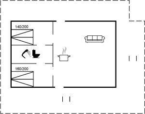 SchlafverhältnisseDie Schlafplätze verteilen sich auf 2 Schlafräume. 4 Schlafplätze in Doppelbetten. 2 Schlafplätze auf Matratzen. 2 von diesen Schlafplätzen befinden sich im offenen Obergeschoss. Ferner steht ein Kinderbett zur Verfügung.