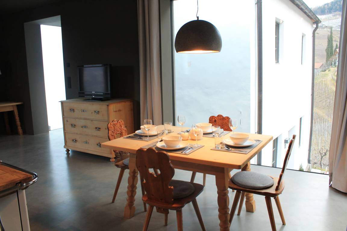 Im neu dazugebauten Gebäude befindet sich der Wohn - Esszimmer Bereich