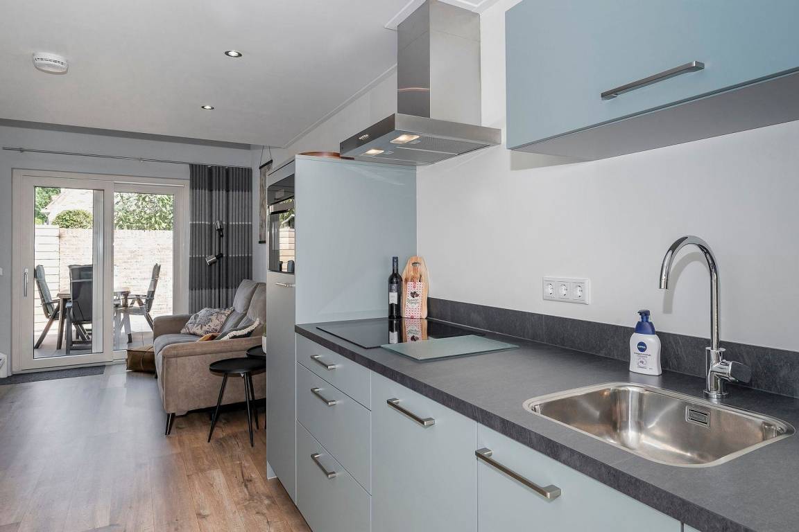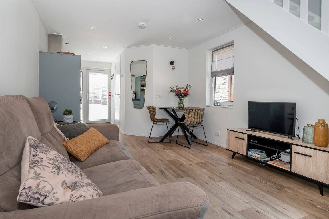 Im Ferienhaus '2bijZee' finden Sie alles, was Sie für einen gelungenen Urlaub brauchen. Im Erdgeschoss befinden sich das Wohnzimmer, die Küche und das Badezimmer mit begehbarer Dusche, Waschbecken und Toilette. Vom Wohnzimmer aus führt eine Treppe zum Schlafzimmer im Obergeschoss mit angrenzender Toilette.