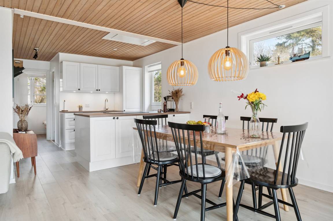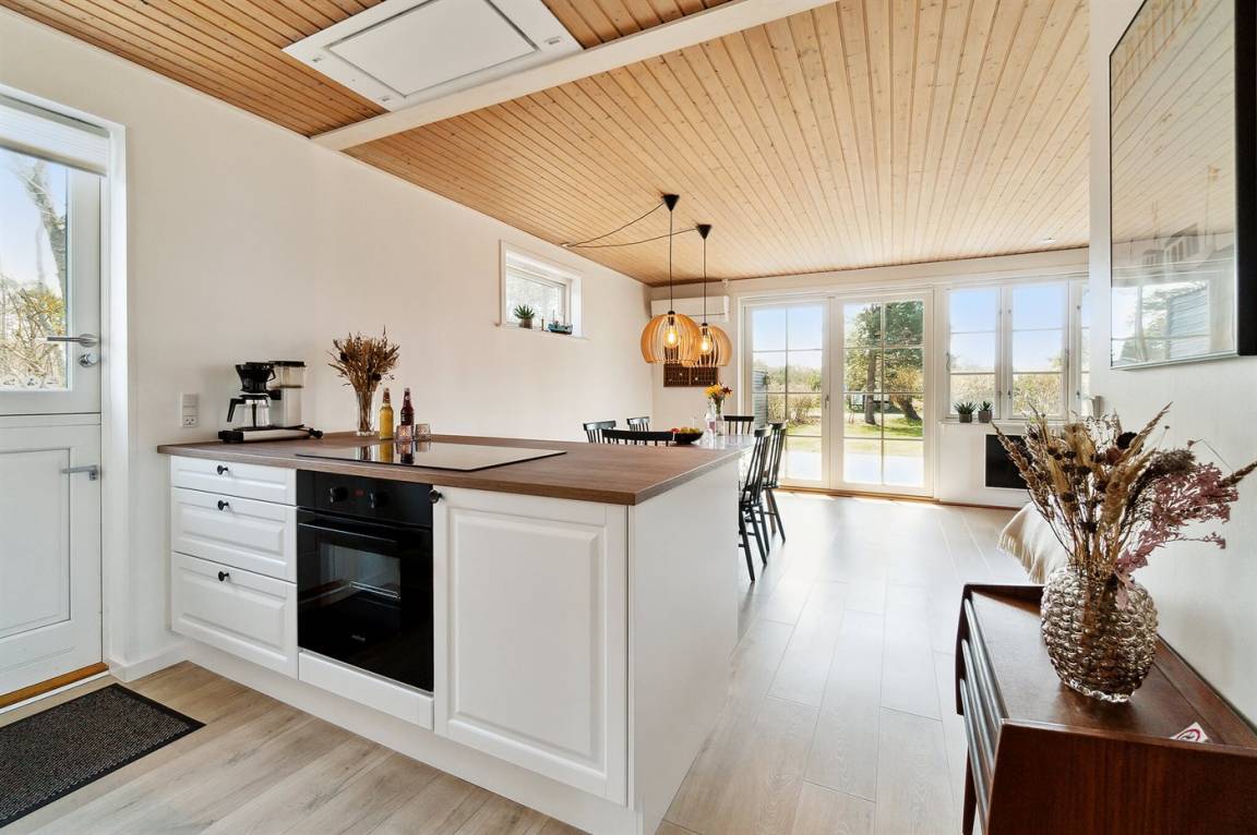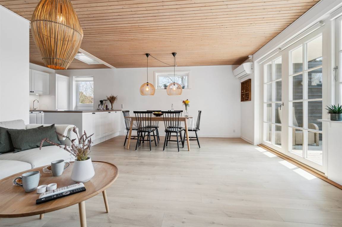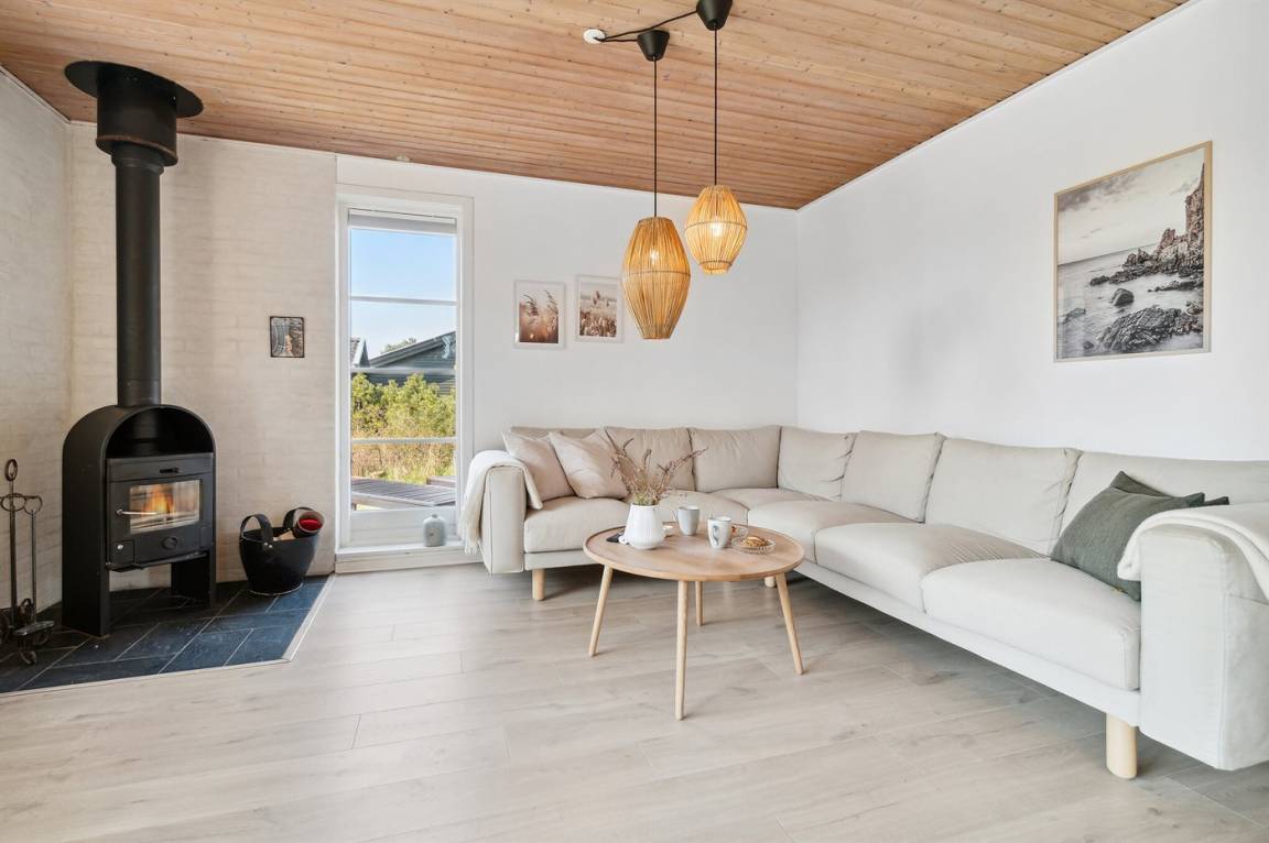 Schönes und besonders gepflegtes Ferienhaus aus Holz, im exklusiven Ferienhausgebiet Holsterodde in Sømarken gelegen. Das Haus und Grundstück sind durch eine mit Holz verkleidete Mauer abgeschirmt, damit Sie sich ungestört auf der teilweise überdachten Terrasse aufhalten können. Im Hauswirtschaftsraum gibt es Waschmaschine. 2018: Neue helle Bodenbelegung. Vom Grundstück gibt es etwa 150 m zum Strand in Sømarken, der auf guten Platz und ein stillen Strandleben bietet. In der Nähe befindet sich der kleine Hafen, Bakka Havn, mit traditioneller Räucherei, Fahrradverleih und Minigolf. 18-Loch Golfplatz in Dueodde ist etwa 5 km vom Haus entfernt. In der kleinen gemütlichen Stadt Pedersker gibt es einen Supermarkt. Wünschen Sie einen aktiven oder erholsamen Urlaub in der Bornholmer Natur, ist dieses Ferienhaus ein gutes Ferienziel.