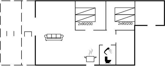 SchlafverhältnisseDie Schlafplätze verteilen sich auf 2 Schlafräume. 4 Schlafplätze in Doppelbetten.