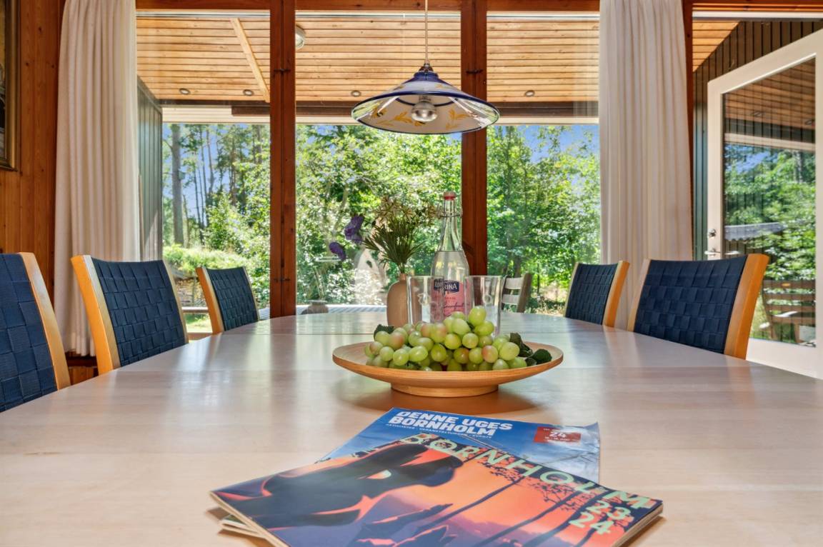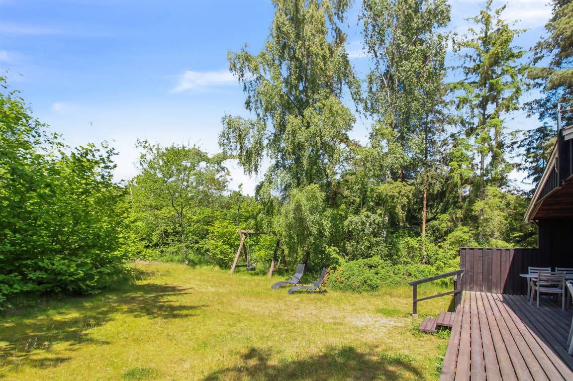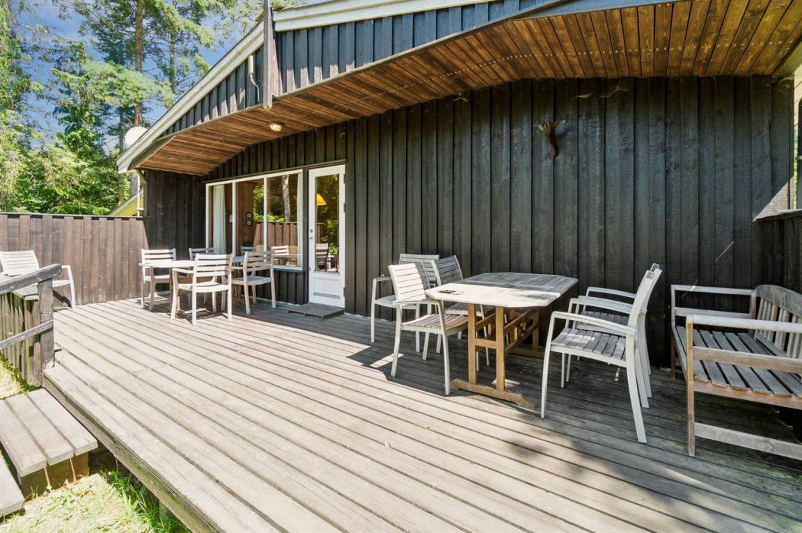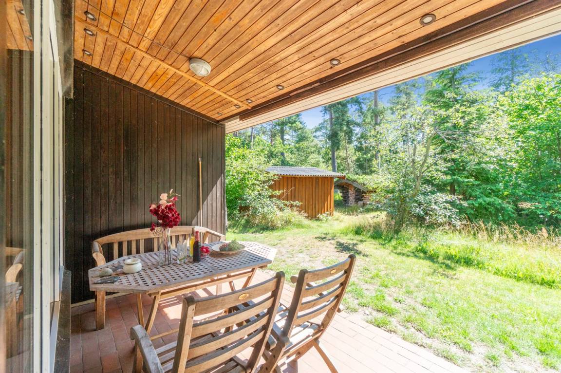 Das Haus ist von mehreren Terrassen umgeben, die teilweise überdacht sind, sodass du immer einen windgeschützten Platz finden kannst. Das große Naturgrundstück ist teilweise mit verschiedenen Bäumen bewachsen, bietet aber auch gute Spielmöglichkeiten - sogar Platz für Ballspiele, damit du während deines Urlaubs etwas Abwechslung hast.