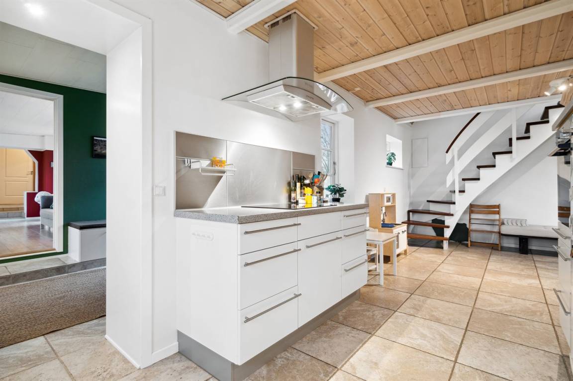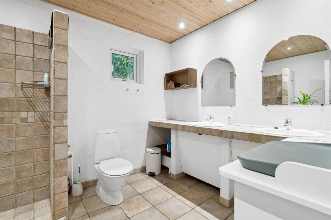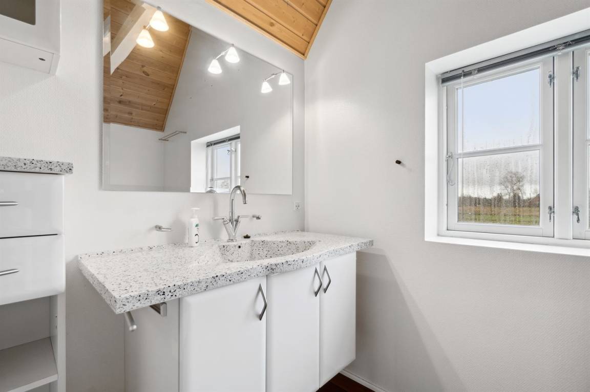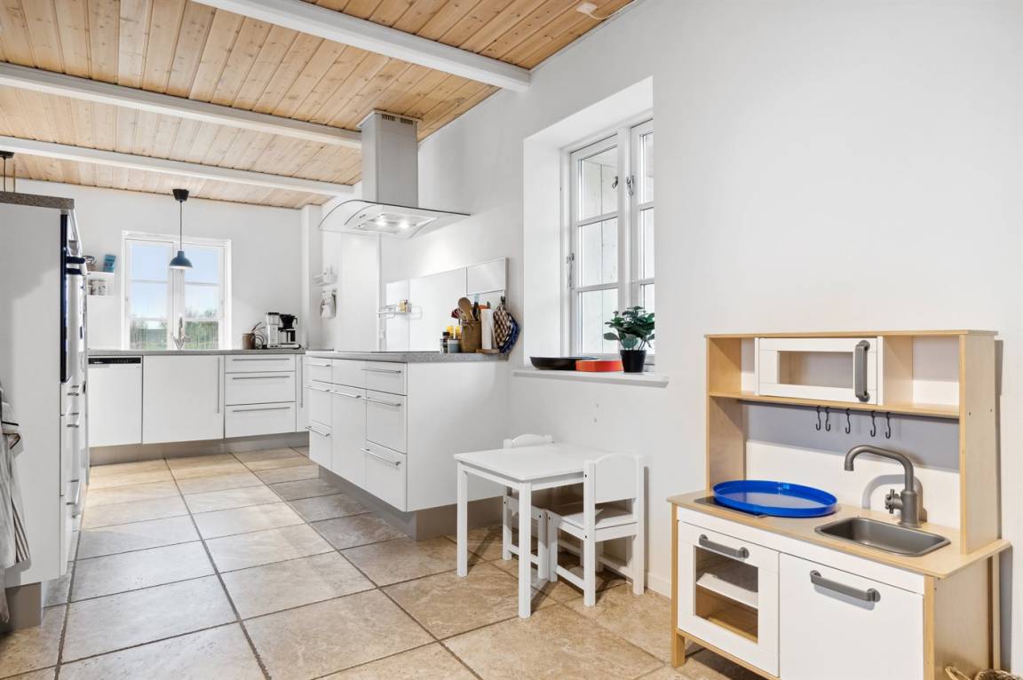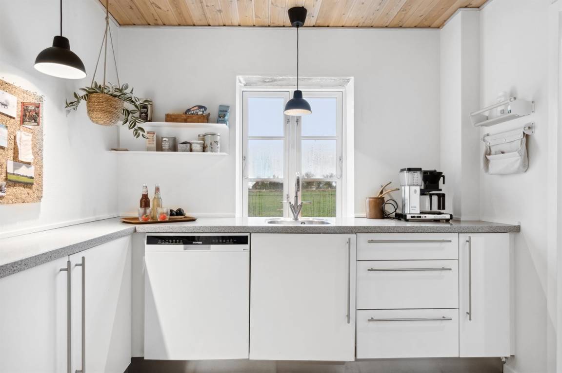 Hier besteht die Möglichkeit, das Tempo zu verlangsamen und Ruhe zu finden, aber es gibt auch Platz für viel Spiel und Gemütlichkeit auf dem Hofplatz und im Garten, der mehrere wirklich gemütliche Ecken hat. Das Haus verfügt über zwei Badezimmer und eine große Küche, in der du Mahlzeiten mit den vielen köstlichen bornholmischen Produkten zubereiten kannst. Das große Ess- und Wohnzimmer ist der zentrale Treffpunkt des Hauses, aber auch das etwas kleinere, aber gemütliche Wohnzimmer mit Kamin und Blick auf die Umgebung hat seinen Reiz.