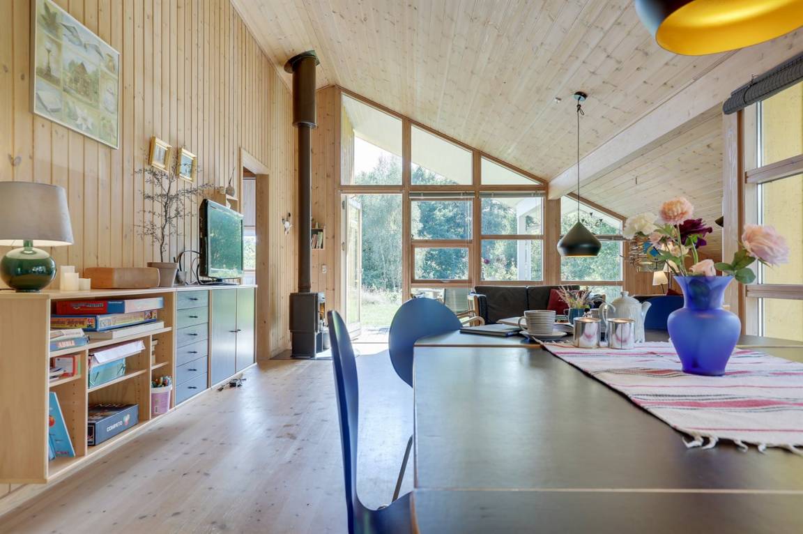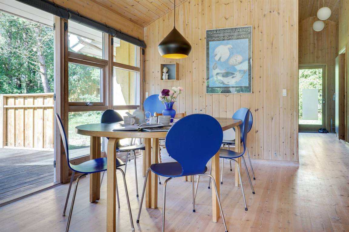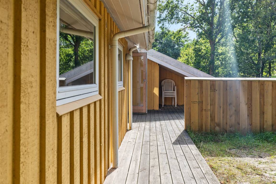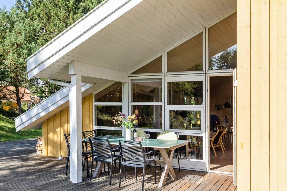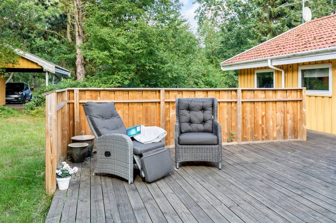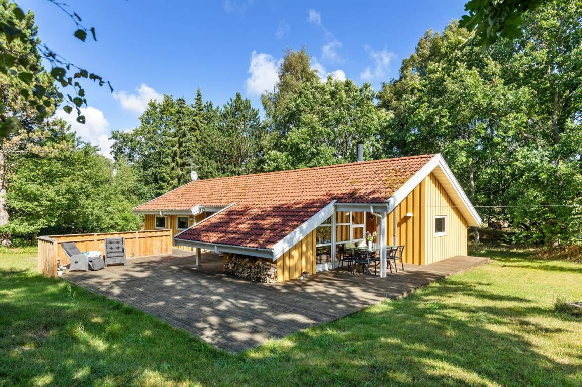 Ein gut eingerichtetes Ferienhaus in ruhiger Umgebung. Zum Ferienhaus gehört eine teilweise überdachte Terrasse, die zum gemütlichen Beisammensein und zum Entspannen einlädt.