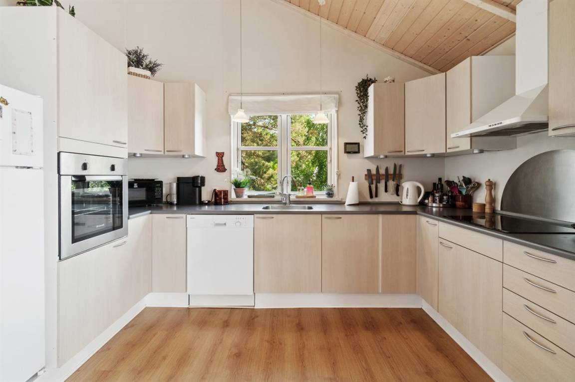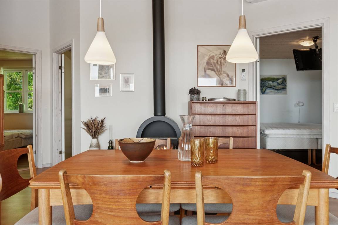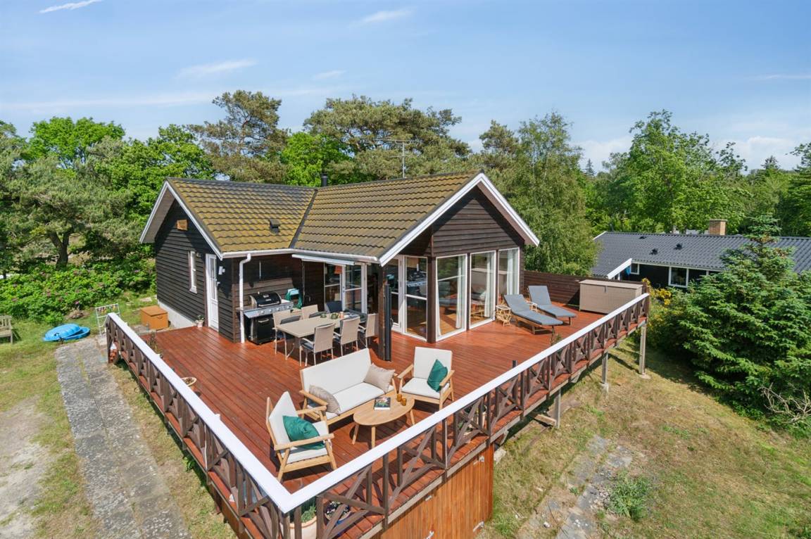 Das Feriengebiet „Boderne" ist für seinen wirklich schönen Sandstrand bekannt, und die Ferienhäuser liegen großzügig über das hügelige Gelände verteilt. Dieses schöne Ferienhaus liegt hoch mit einem großartigen Blick über das Meer – den du sowohl vom Wohnzimmer als auch von den Terrassen aus in vollen Zügen genießen kannst.