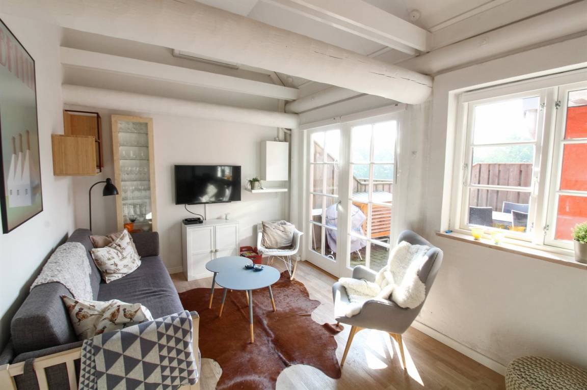Diese nette Ferienwohnung in Dams på Bakken liegt etwas außerhalb von Aakirkeby -dicht an Wald und Strand sowie dem Erlebniscenter NaturBornholm. Es gibt eine Terrasse mit Aussicht auf die Felder und die weidenden Tiere - etwas worauf die jüngsten Feriengäste großen Wert legen sowie eine neue Terrasse, zum Hofplatz hinaus, mit eigenem Eingang. Dams på Bakken ist ein ehemaliger Hof von 1870, der 2006 zu Ferienwohnungen umgebaut worden ist. Die Wohnung liegt auf einem Gemeinschaftsgelände mit u. a. Außenswimmingpool (16 x 10 x 0,7-1,8 m) und Spielplatz. Der Swimmingpool wird im Zeitraum vom 15/6 bis zum 15/9 (von 8:00 bis 20:00 Uhr) mithilfe einer Wärmepumpe beheizt. Dams på Bakken ist ein beliebter Ferienort - dicht an guten Aktivitätsmöglichkeiten und Sehenswürdigkeiten.