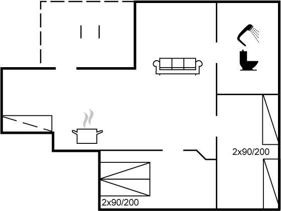 SchlafverhältnisseDie Schlafplätze verteilen sich auf 2 Schlafräume. 2 Schlafplätze in einem Doppelbett. 2 Schlafplätze in Einzelbetten.