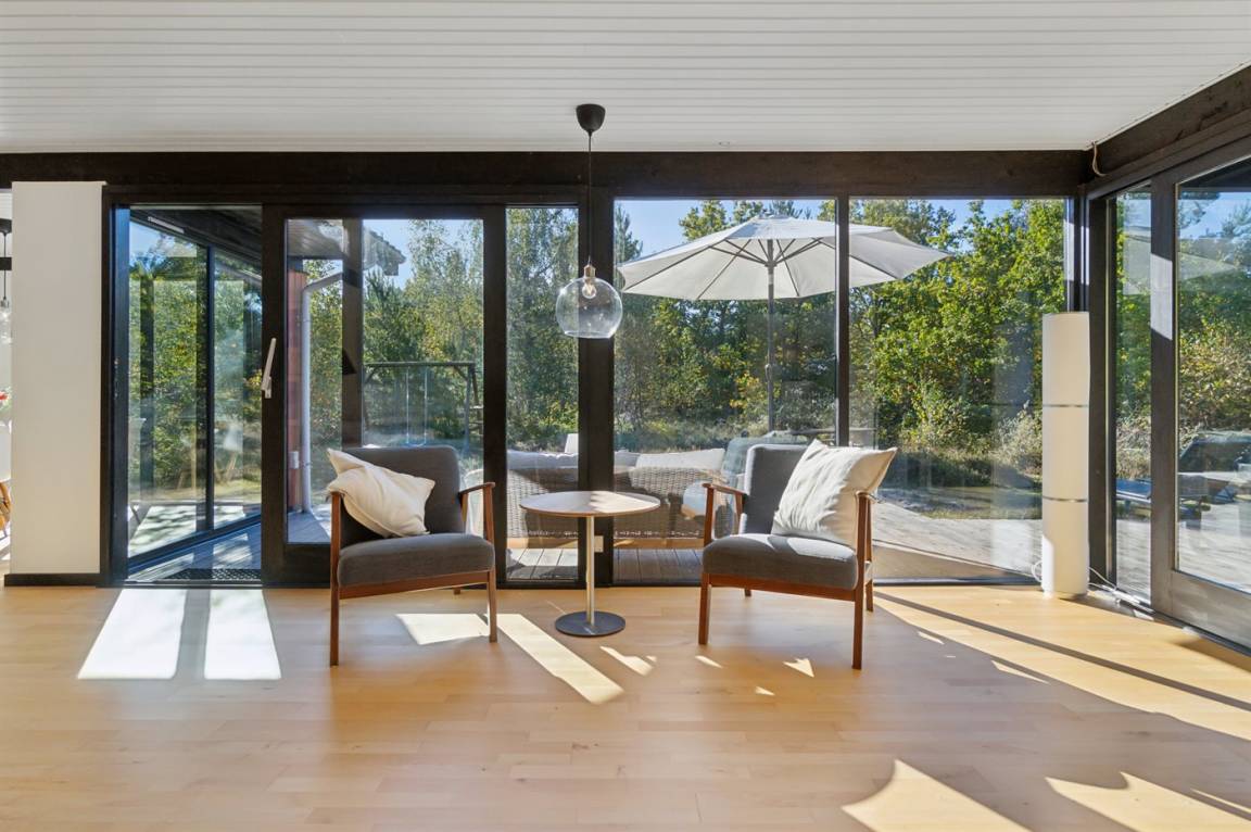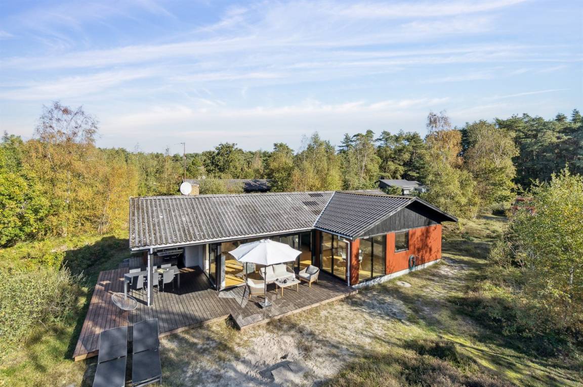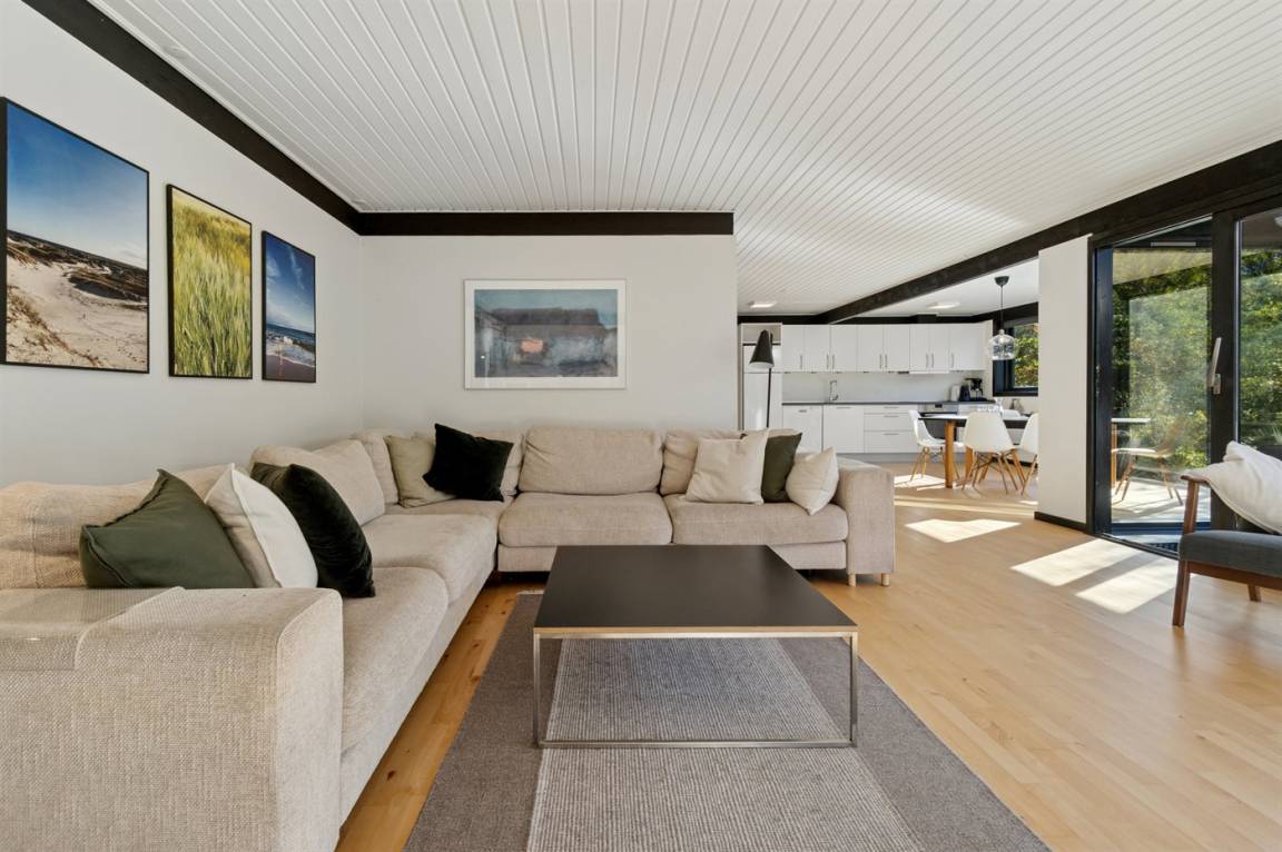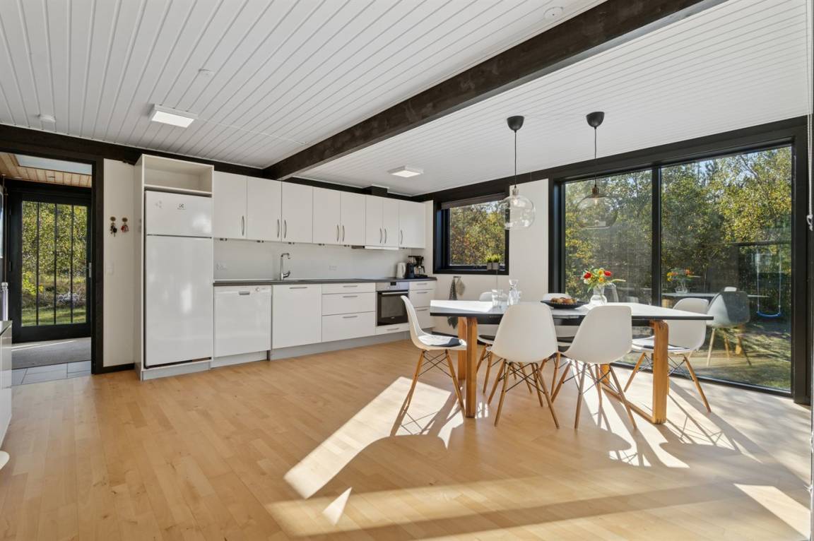Gut eingerichtetes Ferienhaus in ruhiger Lage in der Nähe des Sandstrandes, wo ein morgendliches Bad einen frischen Start in den Tag ermöglicht. Große Terrassenfenster mit direktem Zugang zur Terrasse sowie ein helles und freundliches Interieur schaffen eine angenehme Urlaubsatmosphäre. Die Sonne, Ruhe und Entspannung auf der teilweise überdachten, nach Süden ausgerichteten Holzterrasse zu genießen, während die Kinder auf dem Naturgrundstück rund um das Haus spielen, kann eine große Freude sein.