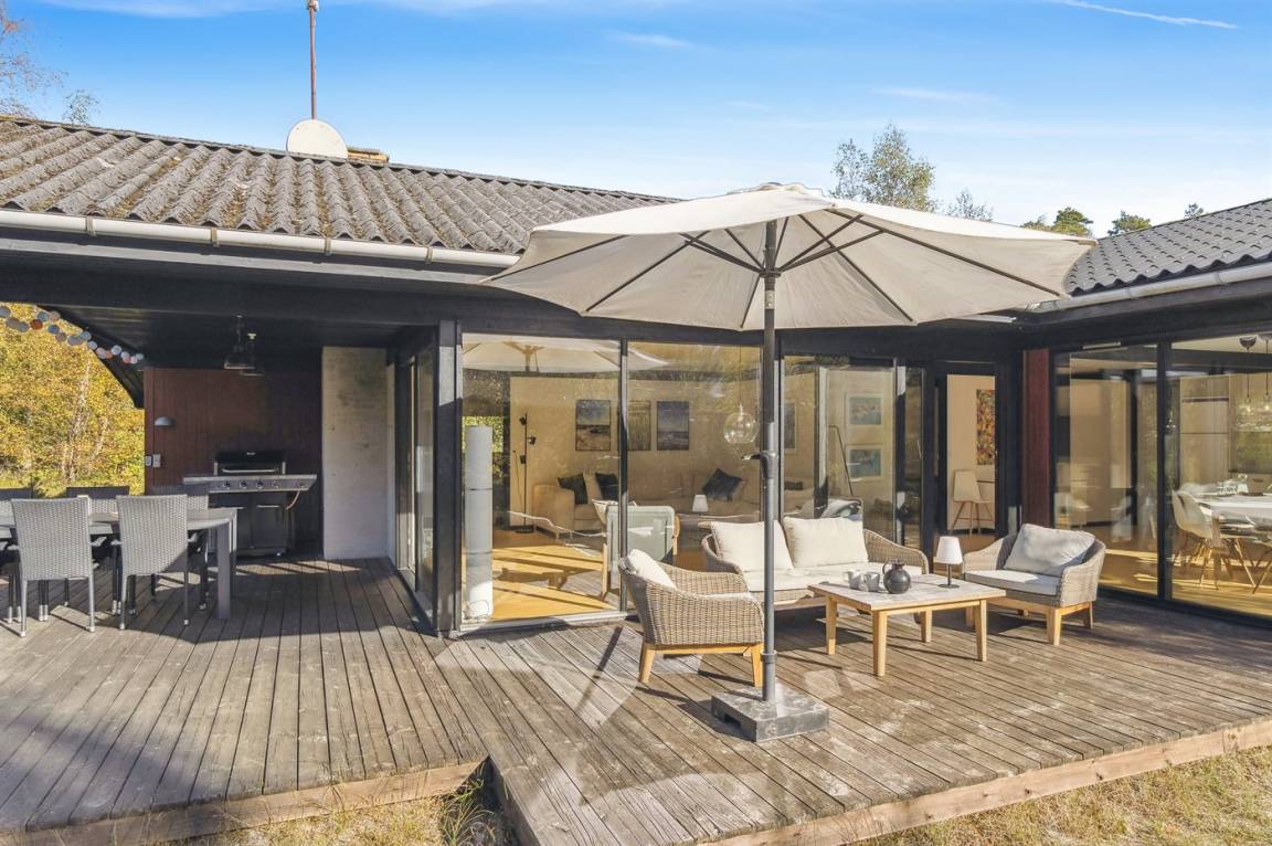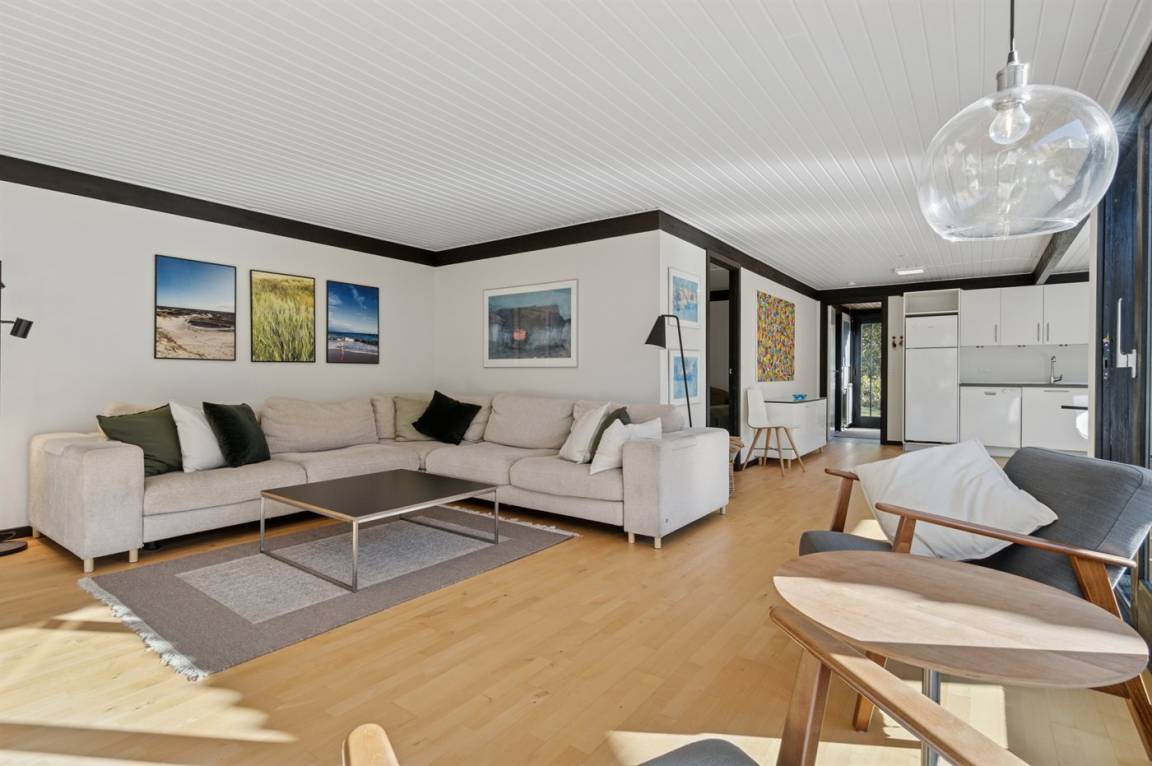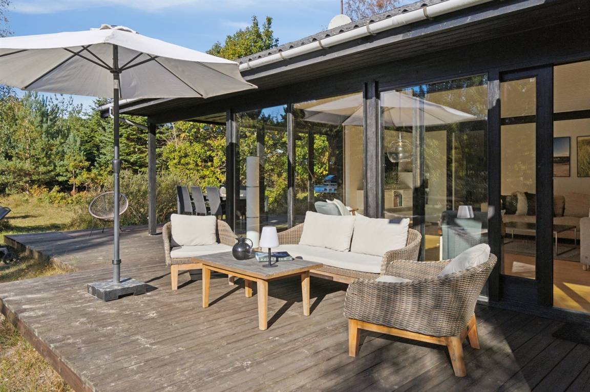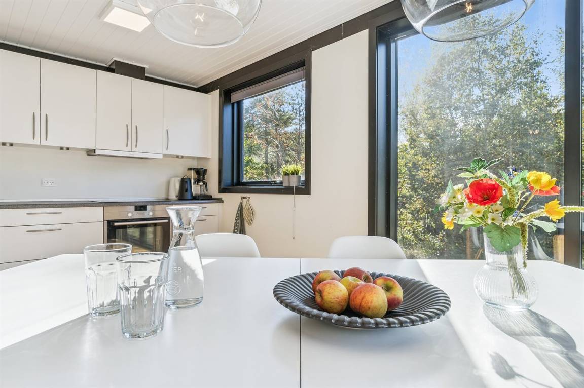 Gut eingerichtetes Ferienhaus in ruhiger Lage in der Nähe des Sandstrandes, wo ein morgendliches Bad einen frischen Start in den Tag ermöglicht. Große Terrassenfenster mit direktem Zugang zur Terrasse sowie ein helles und freundliches Interieur schaffen eine angenehme Urlaubsatmosphäre. Die Sonne, Ruhe und Entspannung auf der teilweise überdachten, nach Süden ausgerichteten Holzterrasse zu genießen, während die Kinder auf dem Naturgrundstück rund um das Haus spielen, kann eine große Freude sein.