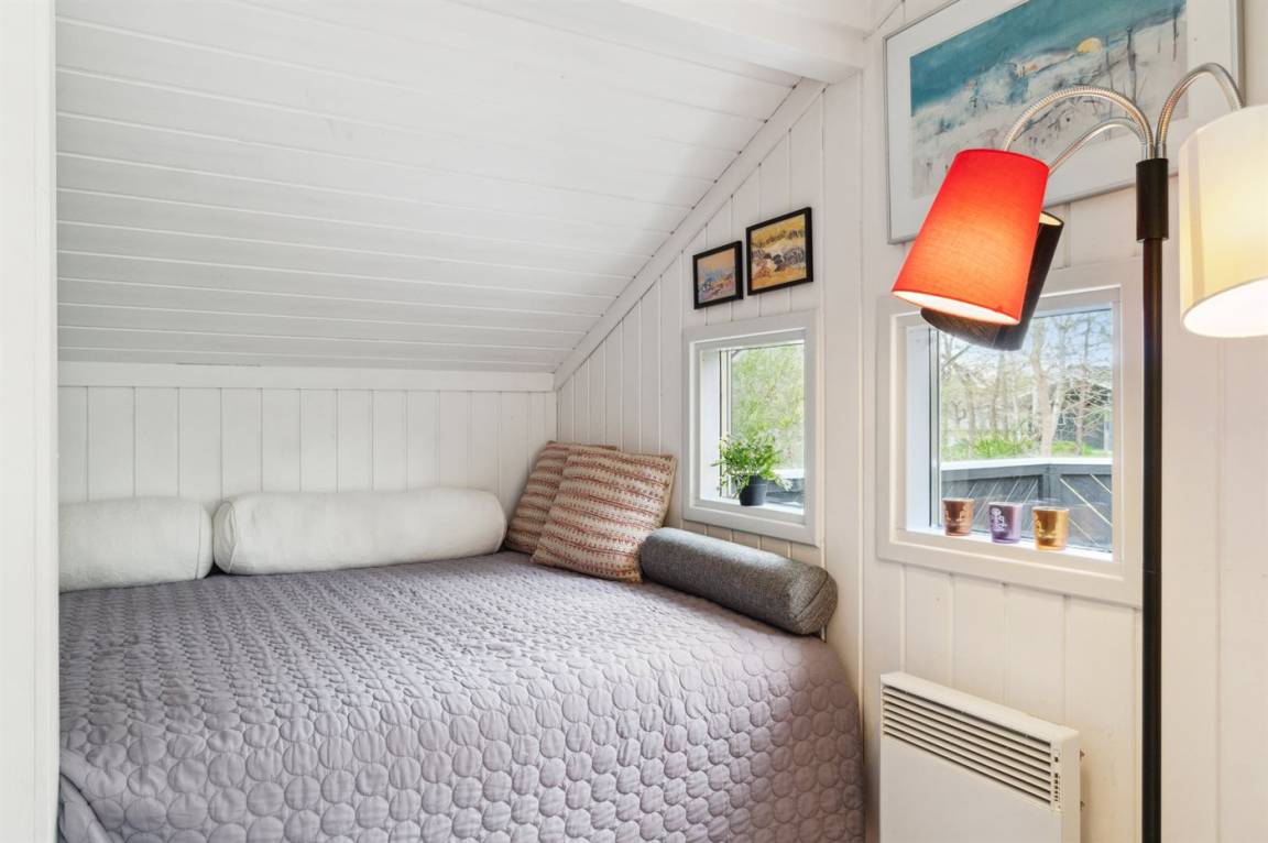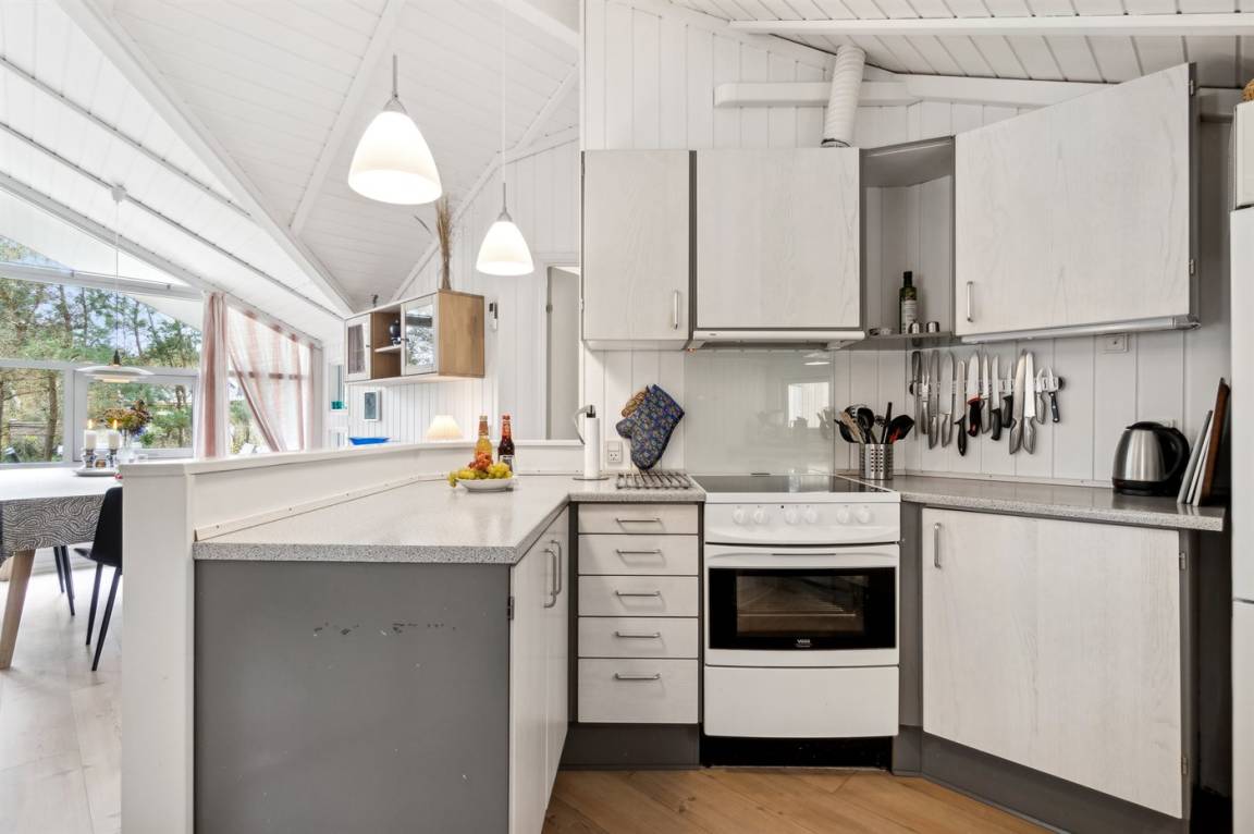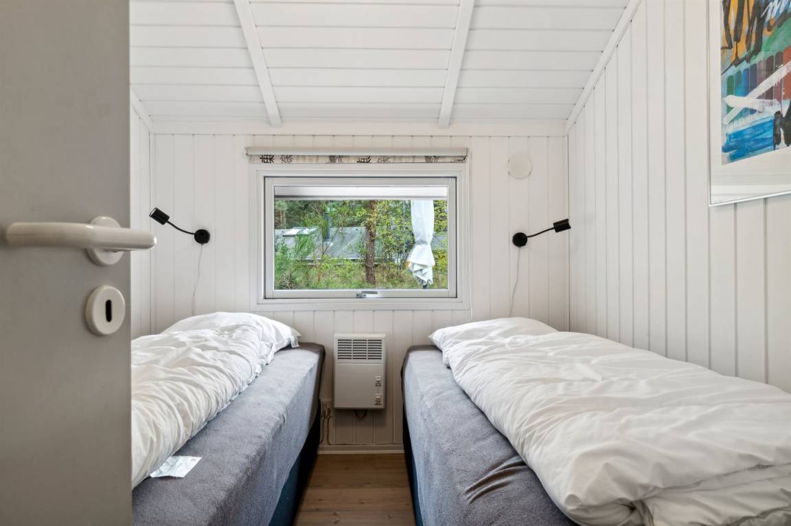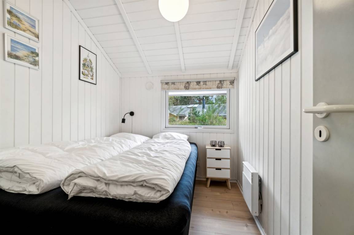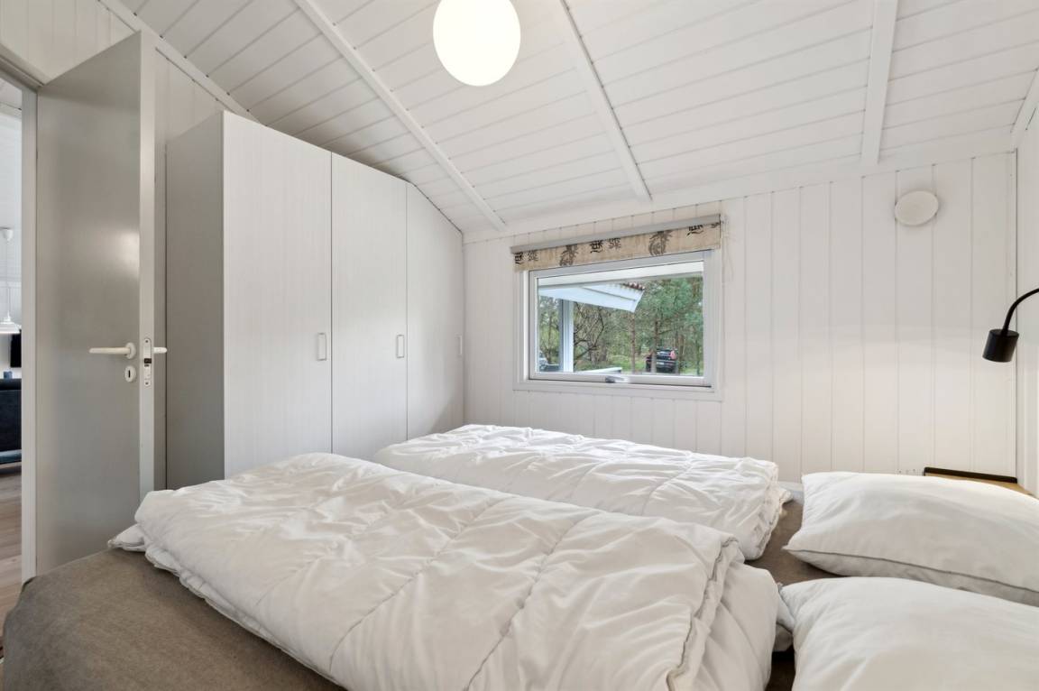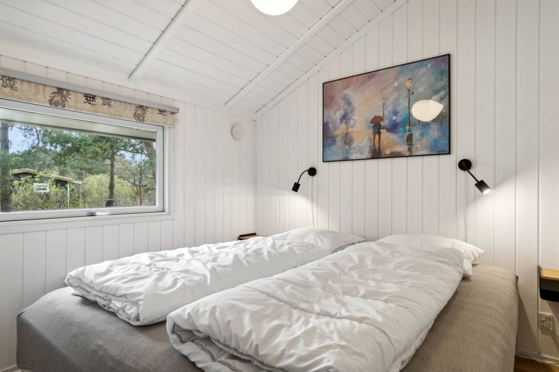 Strandnahes, gut ausgestattetes Ferienhaus in schöner Lage in einem gemütlichen Ferienhausgebiet. Das Haus grenzt an ein geschütztes Waldgebiet an, sodass man eine ungestörte Terrasse hinter dem Haus findet, auf der man die Sonne in vollen Zügen genießen kann. Die Nachmittagsterrasse auf der anderen Seite des Hauses ist teilweise überdacht und gut möbliert mit passenden Gartenmöbeln.