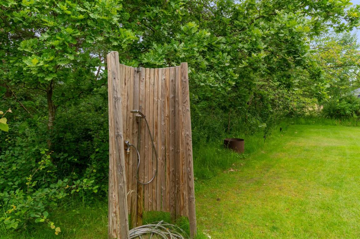 DraußenDie Ferienunterkunft liegt auf einem 1692 m² großen Naturgrundstück. Die Entfernung zum Meer beträgt 600 m. Die nächste Einkaufsmöglichkeit liegt 2700 m entfernt. In einem Abstand von 3800 m gibt es einen Golfplatz. Es steht ein offenes Terrassenareal zur Verfügung. Außerdem gibt es überdachte Terrasse. Geräteraum. Außendusche. Es steht ein Grill zur Verfügung. Parkplatz auf dem Grundstück.