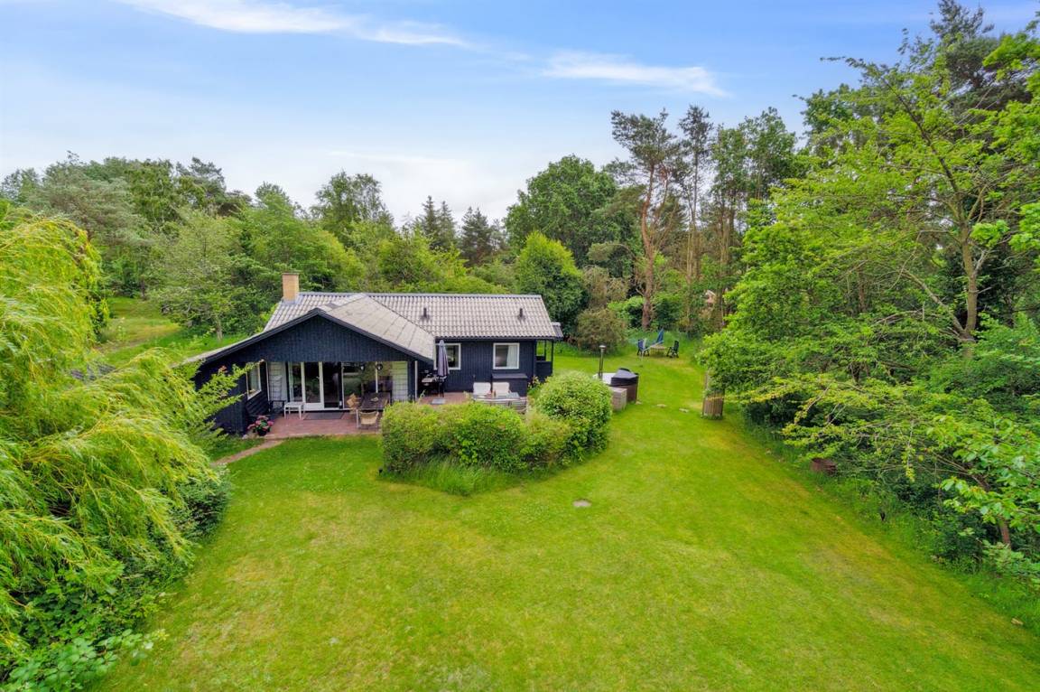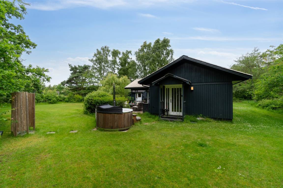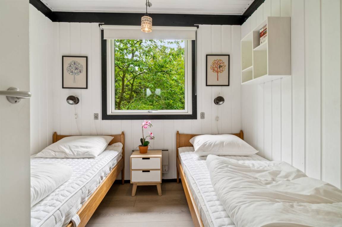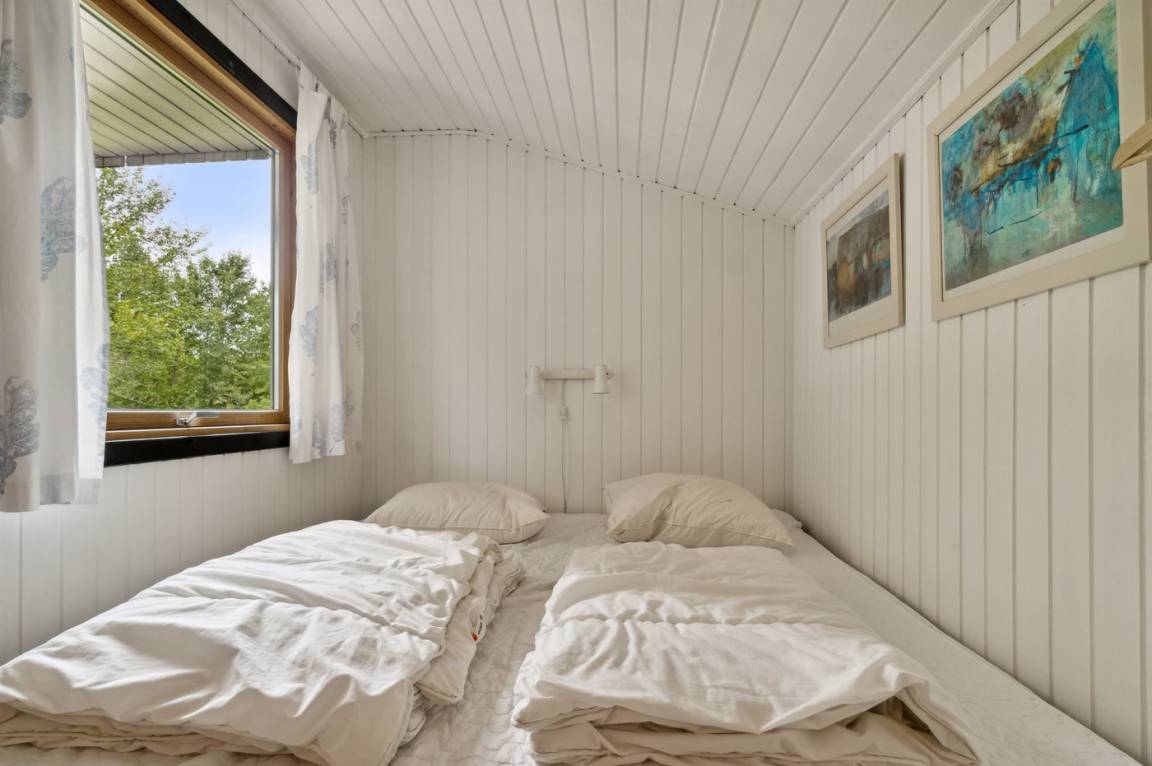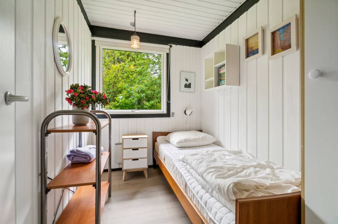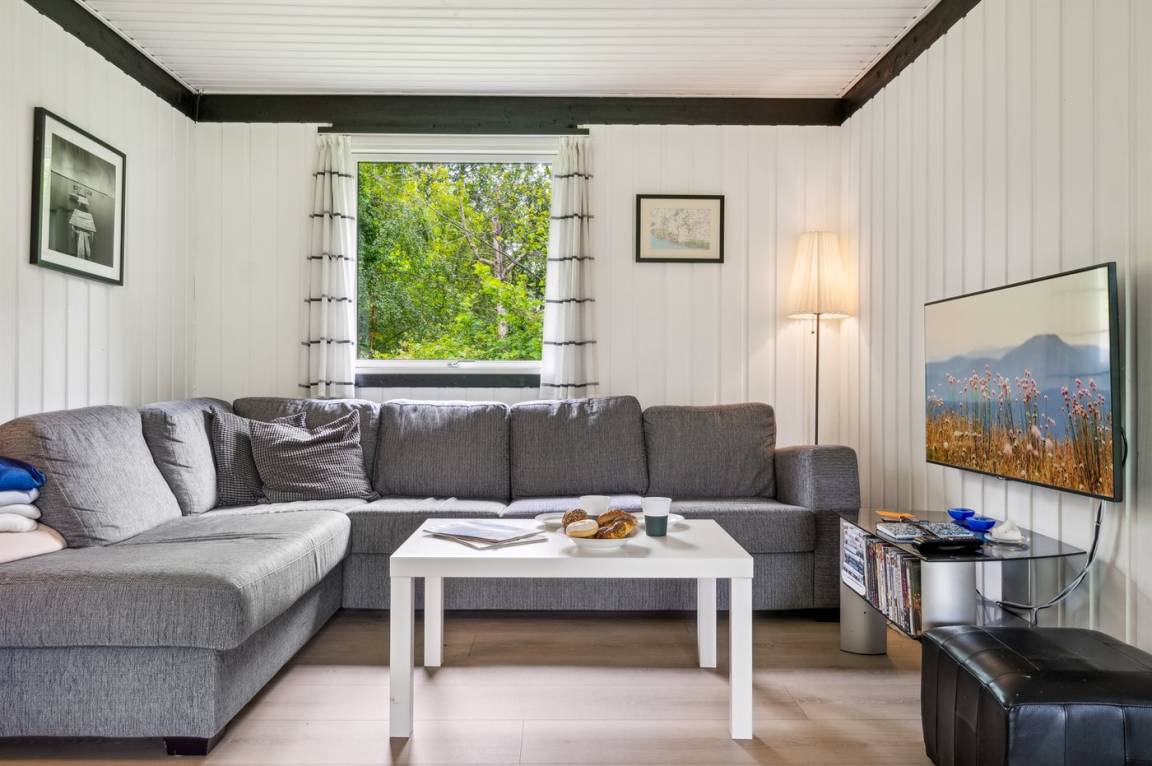 Dieses schöne Holzferienhaus liegt in Vestre Sømarken in der Nähe eines der besten Sandstrände der Insel, wo man auch an Sommertagen einen ruhigen Platz finden kann.