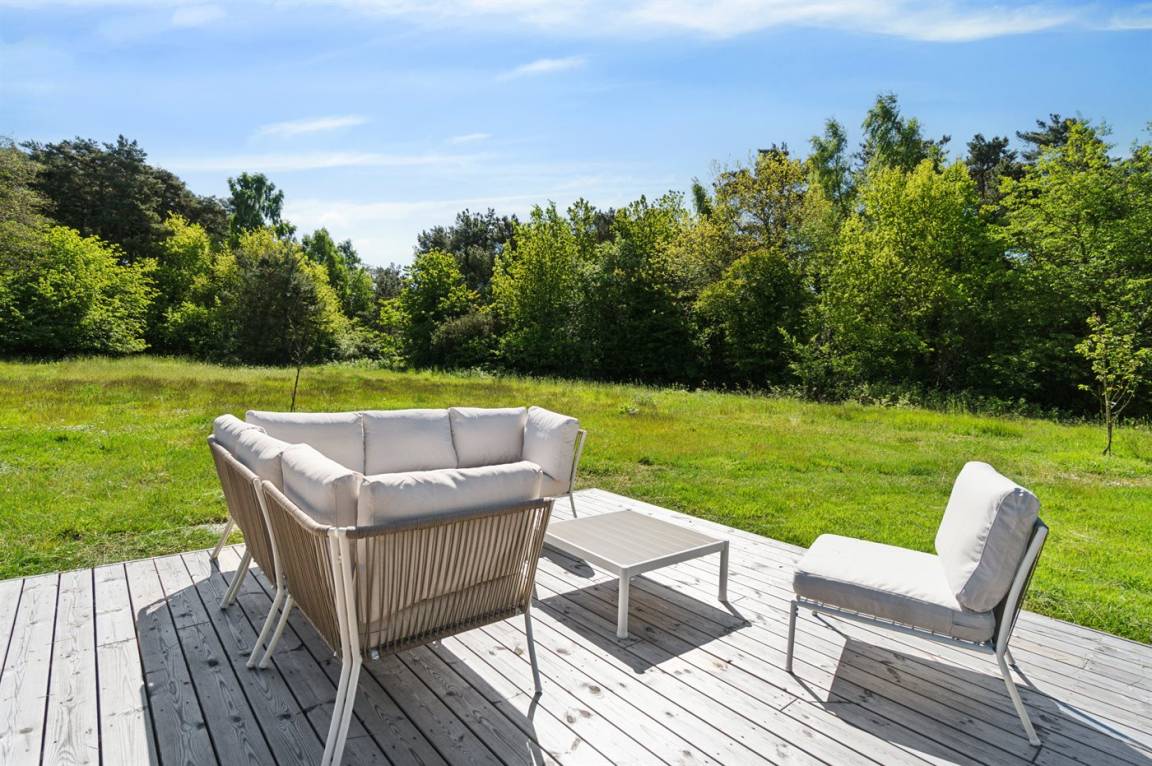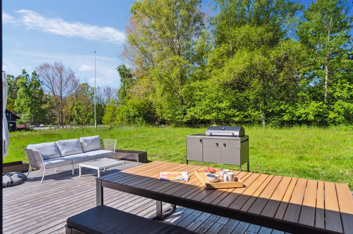 Genieße entspannte Stunden im Freien auf der großen Holzterrasse und dem Grundstück.