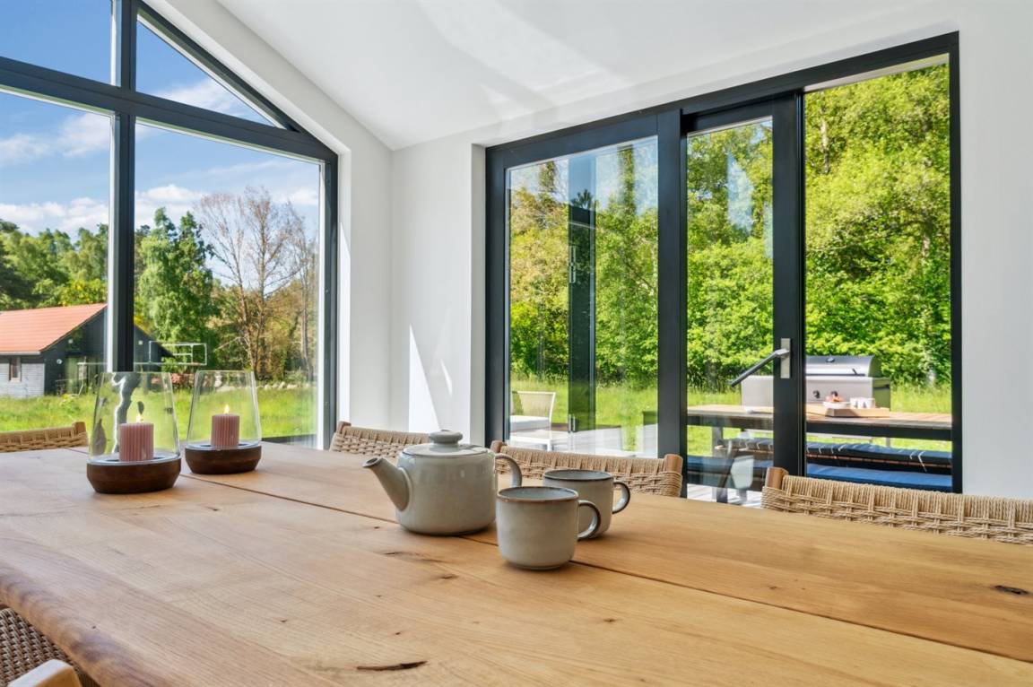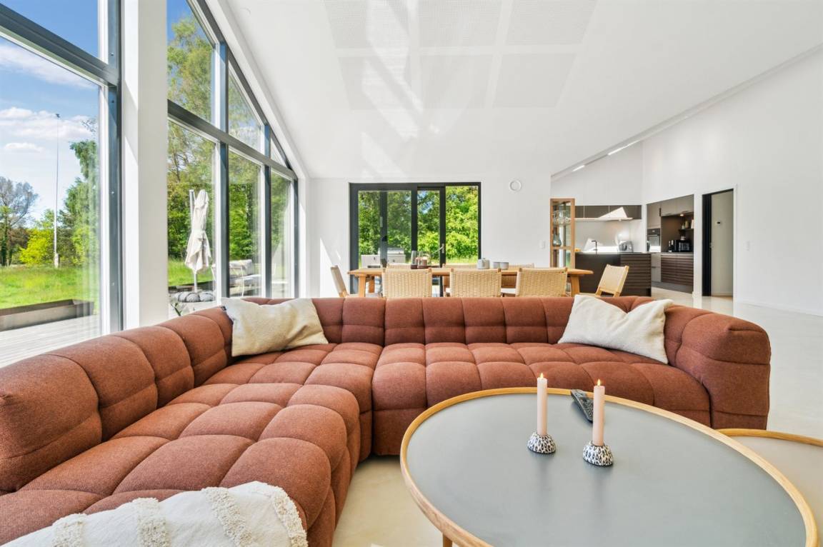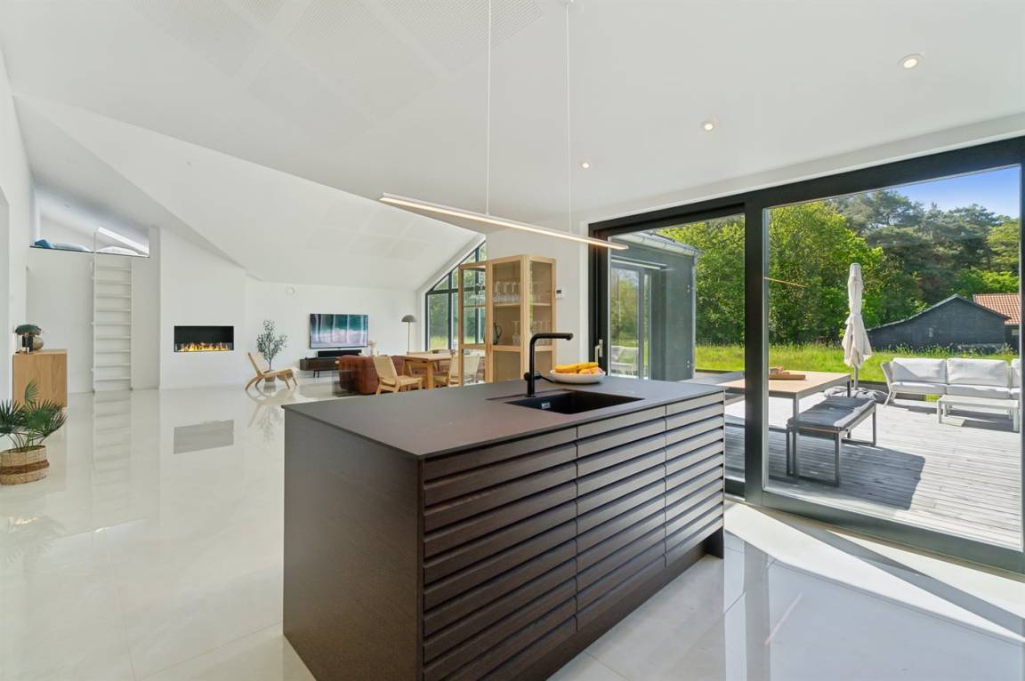 Dieses schöne Ferienhaus ist mit einem geräumigen Wohnraum ausgestattet - mit edlem, hellen Marmorboden. In Kombination mit den weiß lasierten Wänden, Decken bist zum First und den großen Panoramafenstern entsteht hier ein ganz besonderes und modernes Ambiente.