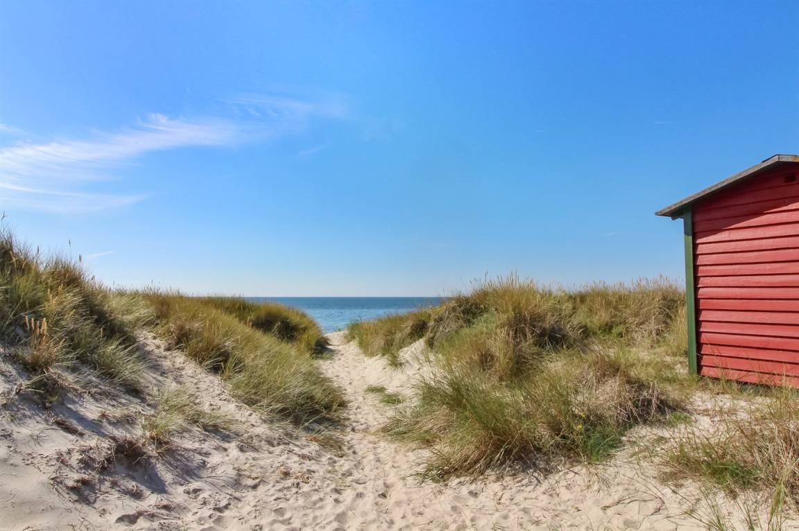 Der herrliche Strand unterhalb des Hauses bietet weißen Sand und Dünenbewuchs, ideal, um die Sommerwärme zu genießen und sich bei Bedarf in den Wellen abzukühlen. Nicht weit entfernt liegt der Dueodde Golfplatz mit 18 Löchern in einer schönen Natur. In Sømarken findet man leicht eine Räucherei im kleinen, noch aktiven Hafen. Mit etwas Glück sind vielleicht sogar frisch gefangene Fische von den kleinen Booten und Kuttern dabei, die hier noch in Betrieb sind.