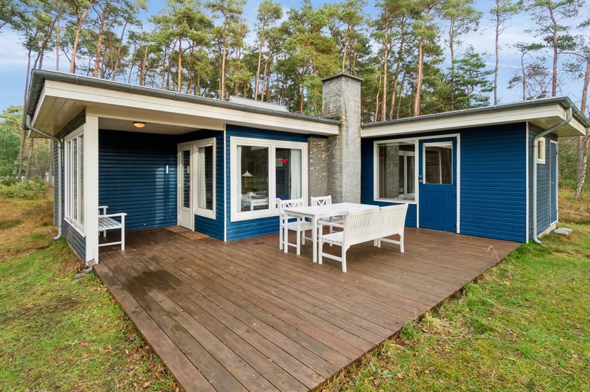 Es gibt schöne Terrassen am Ferienhaus, daunter eine neu angelegte, 26 m² große Terrasse direkt am Küchenbereich ergänzt. Die praktische Lage bei der Küche macht es einfach, Essen und Getränke mit nach draußen zu nehmen, und die Terrasse lädt sowohl zum Entspannen als auch zum gemütlichen Zusammensein ein.
