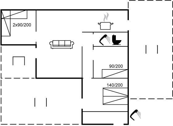 SchlafverhältnisseDie Schlafplätze verteilen sich auf 3 Schlafräume. 2 Schlafplätze in einem Doppelbett.1 Schlafplatz in einem Einzelbett. 2 Schlafplätze in einem Etagenbett. Ferner steht ein Kinderbett zur Verfügung.