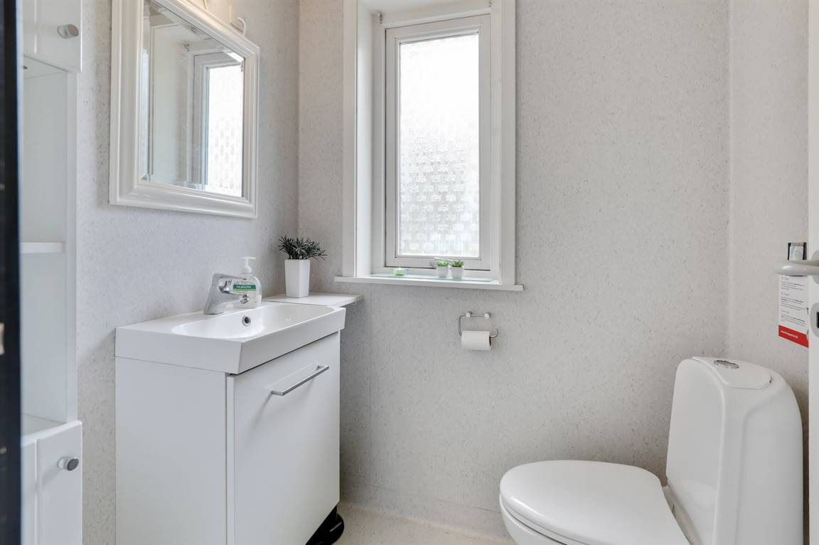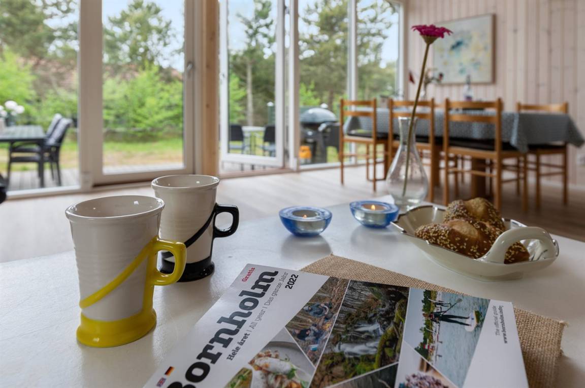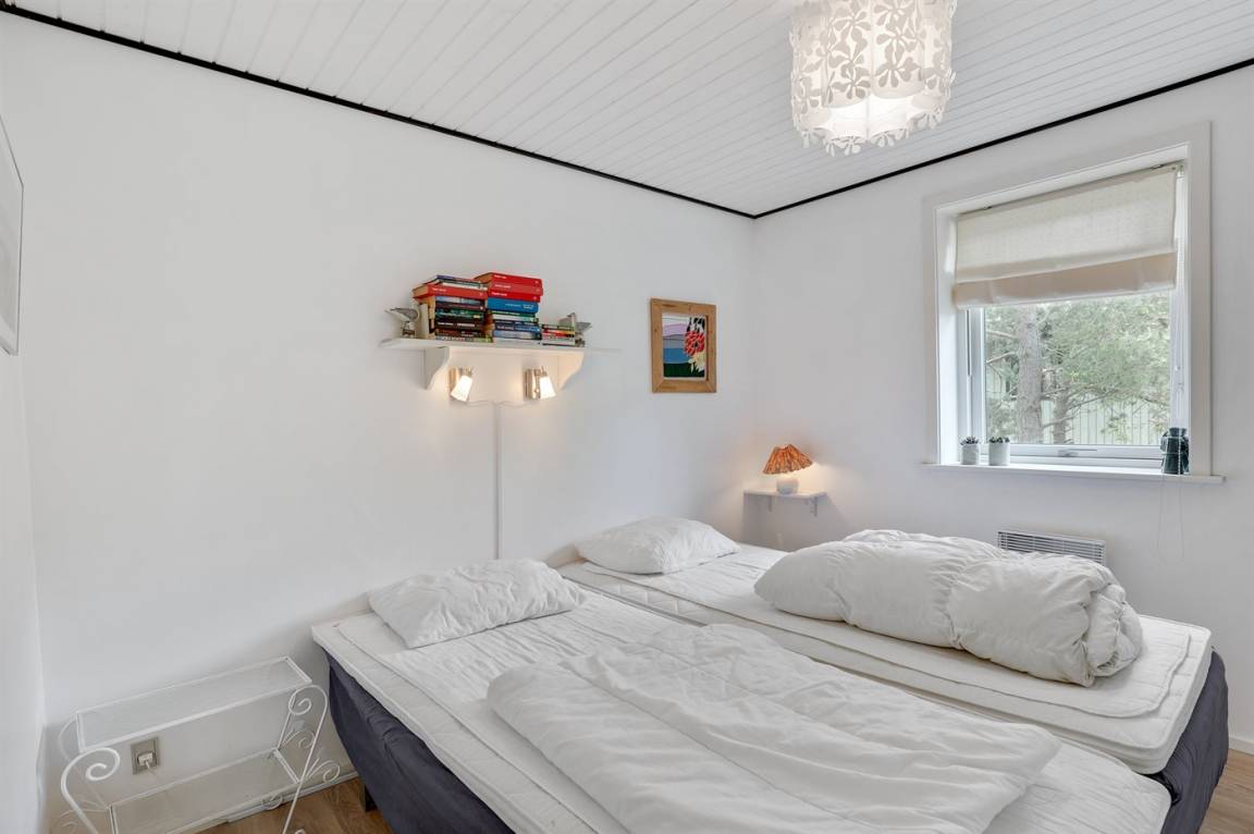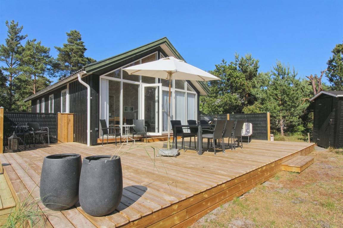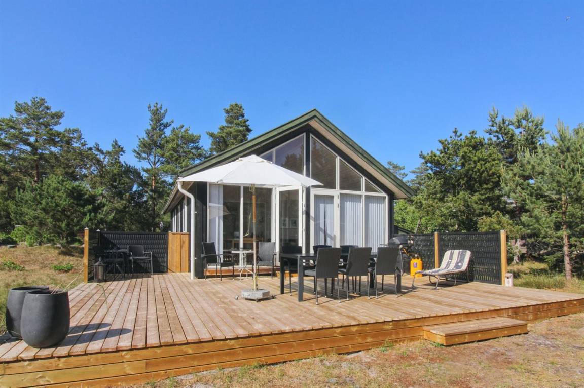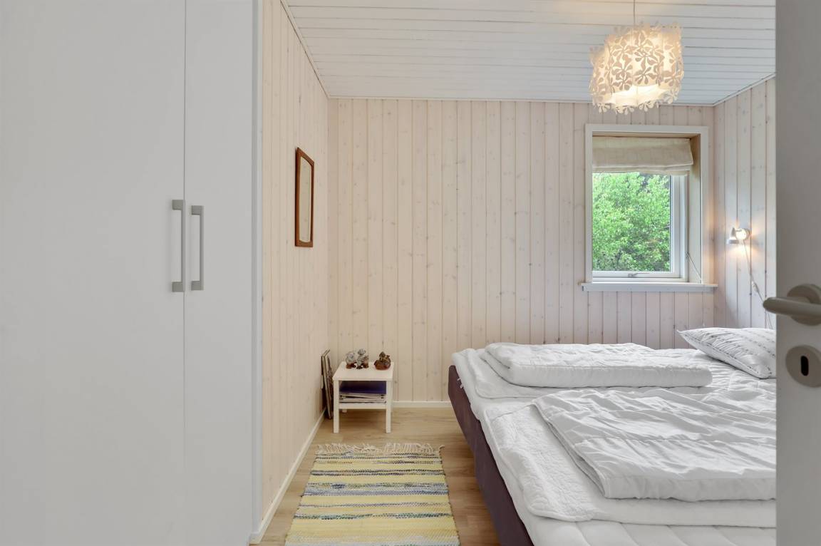 Ferienhaus in guter Lage, das 2022 modernisiert und mit neuen, hellen Holzböden, einem Küchenbereich und einer Erweiterung des Wohnzimmers mit hellen Wänden und einer bis unter den Dachfirst reichenden Decke ausgestattet wurde. Die großen Panoramafenster reichen im Wohnzimmer bis unter den Dachfirst und sorgen dafür, dass Sie Wetter und Natur auch im Haus erleben können.