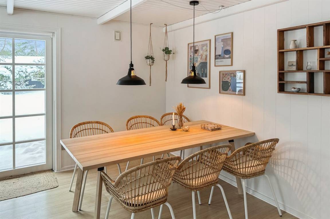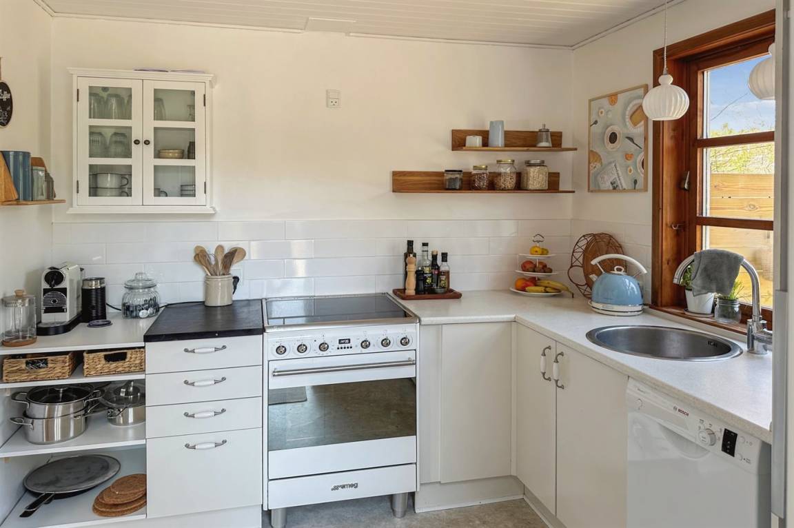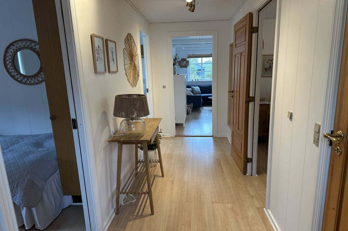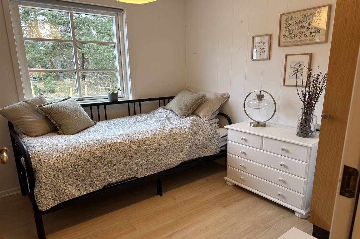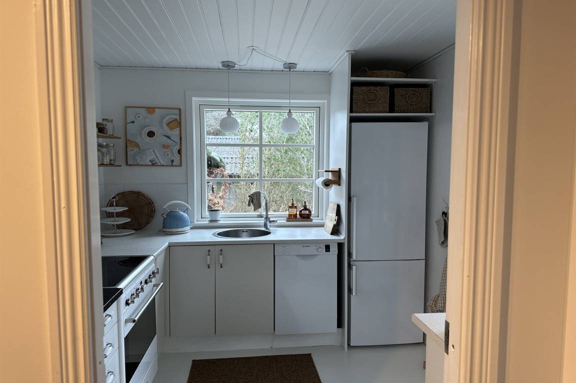Das Haus wurde 2021 mit neu gestrichenen Wänden und Decken sowie einzelne neue Möbel modernisiert – und tritt hell und freundlich hervor. Die separate Kücheabteilung ist u. a. mit Geschirrspüler ausgestattet. Das Wohnzimmer hat direkten Zutritt zur Terrasse und enthält u. a. Fernseher mit Smart-TV (4 deutsch Fernsehsender), Sonos Bluetooth-Lautsprecher und Stereoanlage. Die Schlafplätze verteilen sich auf 3 helle Zimmer; eines mit Doppelbett, eines mit zwei Einzelbetten und eines mit einer ausziehbaren Schlafcouch. Alle Betten sind von guter Qualität. Das Kinderzimmer ist ein Durchgangszimmer und hat eigenen Zutritt zur Terrasse. Schönes Badezimmer mit Fußbodenheizung und Duschnische.