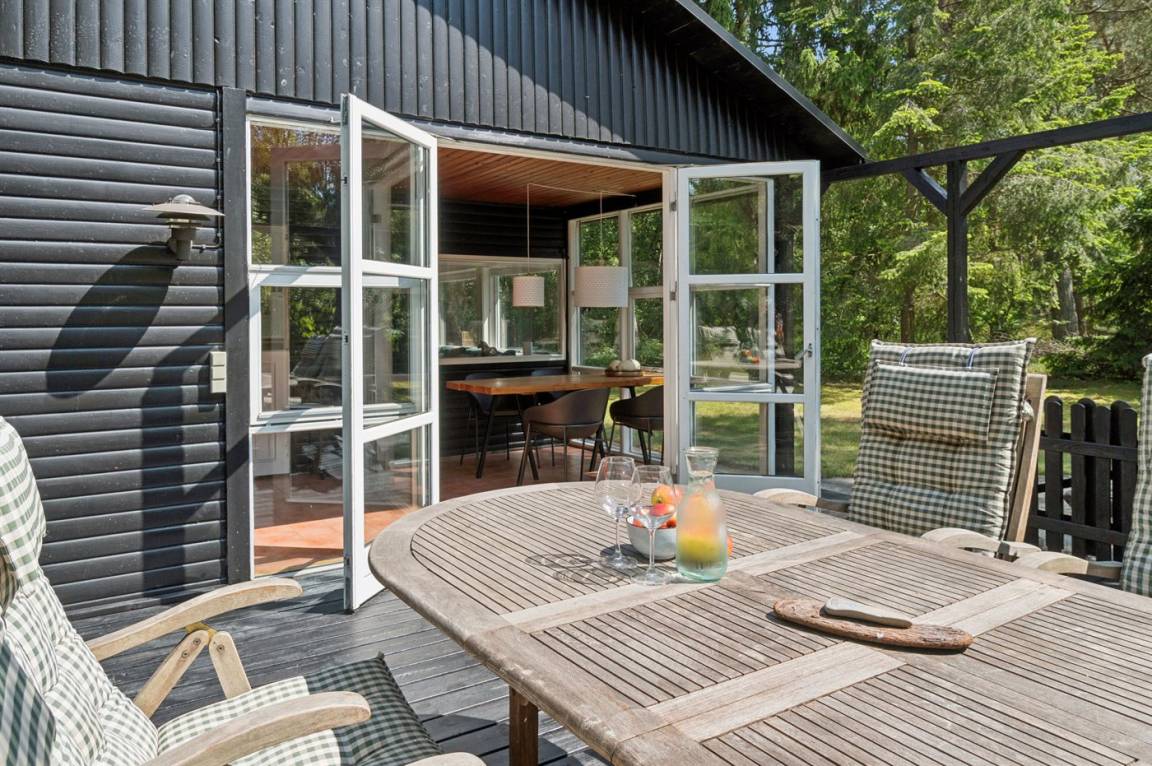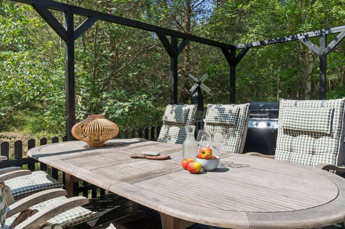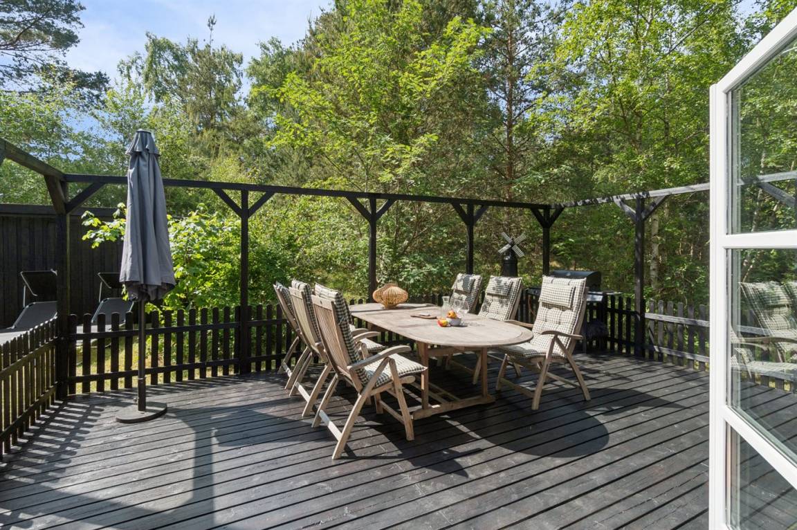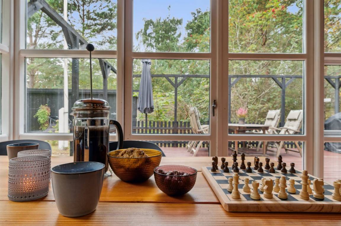 Dieses schöne Ferienhaus liegt etwas zurückgezogen auf einem Naturgrundstück mit leichter Bepflanzung – daher kann man sich verhältnismässig ungestört auf dem Grundstück aufhalten. Über die letzten Jahre wurde das Haus modernisiert - unter anderem mit einer neuen, schönen und funktionalen Küche. Die Möblierung ist von sehr guter Qualität und alles tritt nett und gepflegt hervor. Zum Haus gehören eine große, teilweise überdachte Terrasse und ein einladender Wintergarten, von dem aus man die Natur und die Umgebung aus erster Reihe genießen kannst.