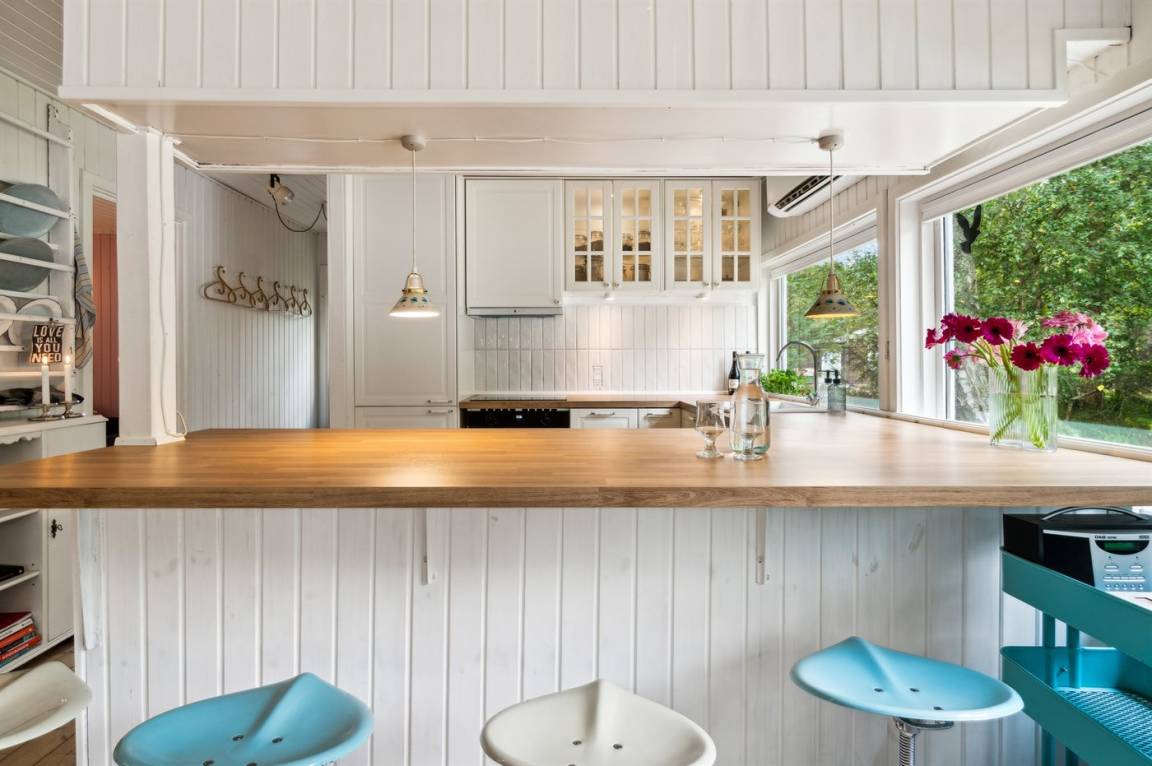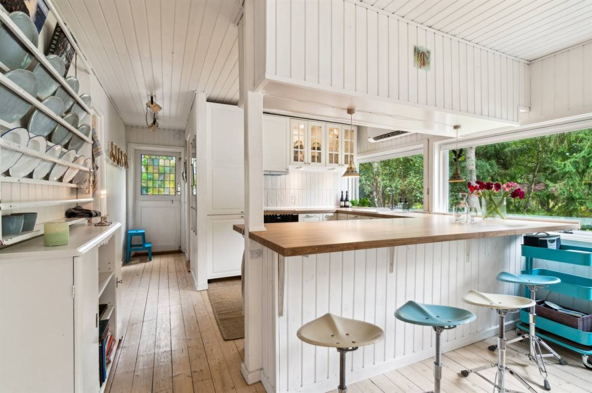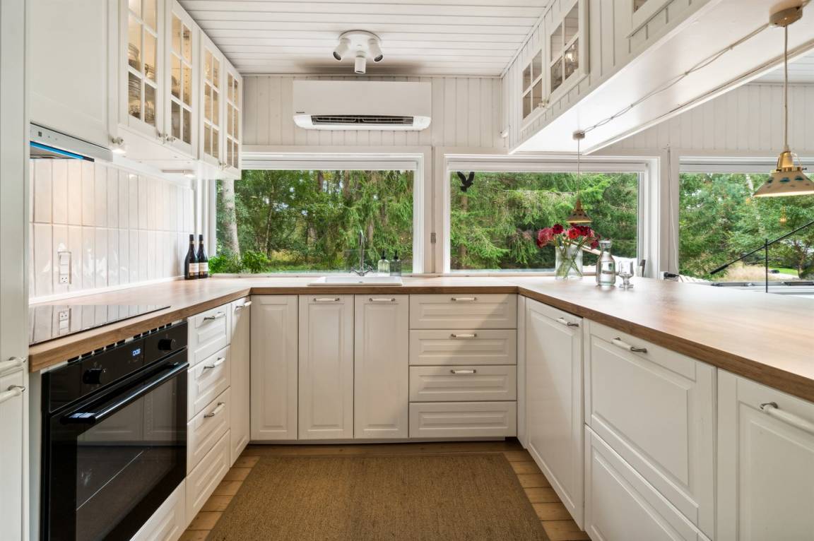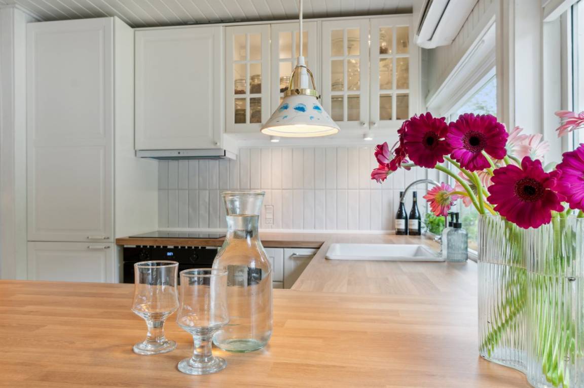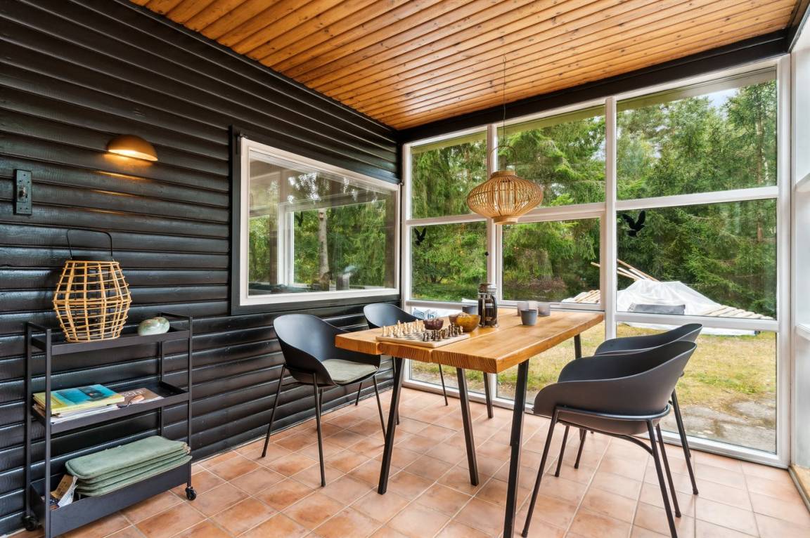 Dieses schöne Ferienhaus liegt etwas zurückgezogen auf einem Naturgrundstück mit leichter Bepflanzung – daher kann man sich verhältnismässig ungestört auf dem Grundstück aufhalten. Über die letzten Jahre wurde das Haus modernisiert - unter anderem mit einer neuen, schönen und funktionalen Küche. Die Möblierung ist von sehr guter Qualität und alles tritt nett und gepflegt hervor. Zum Haus gehören eine große, teilweise überdachte Terrasse und ein einladender Wintergarten, von dem aus man die Natur und die Umgebung aus erster Reihe genießen kannst.