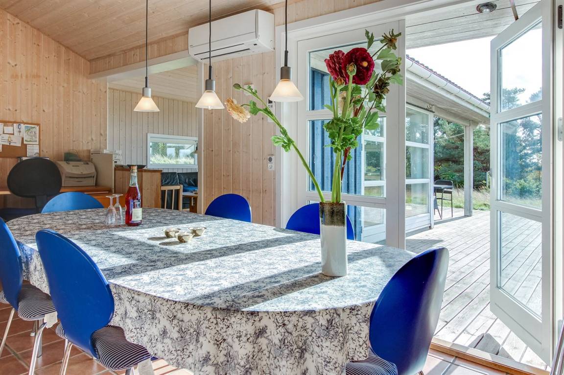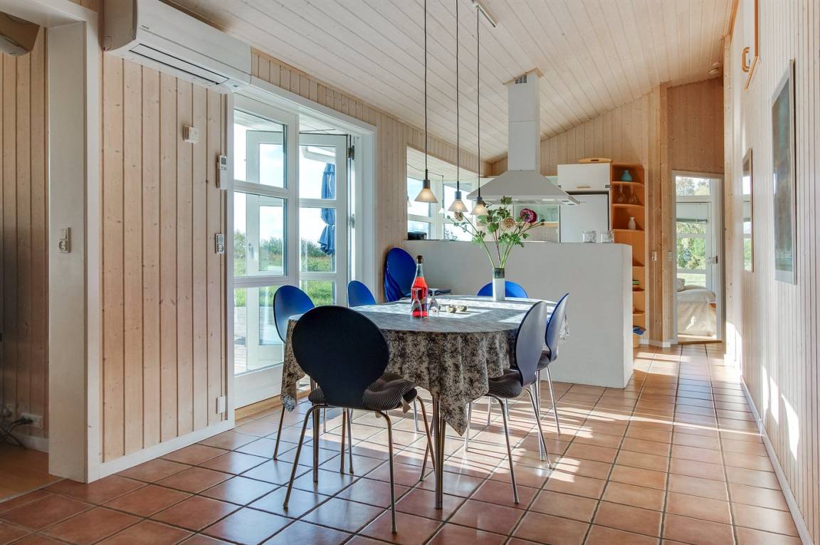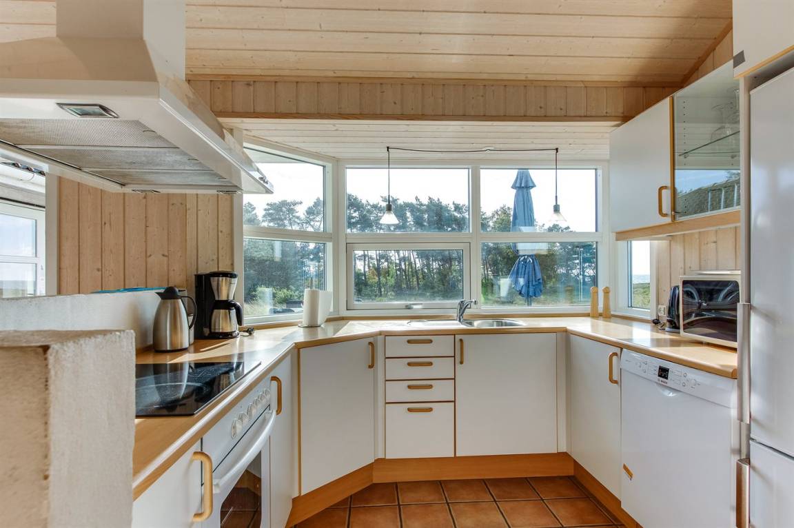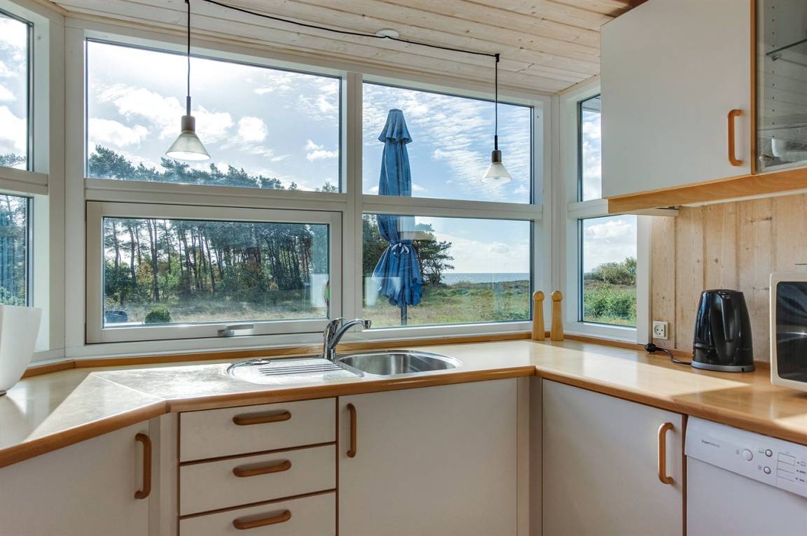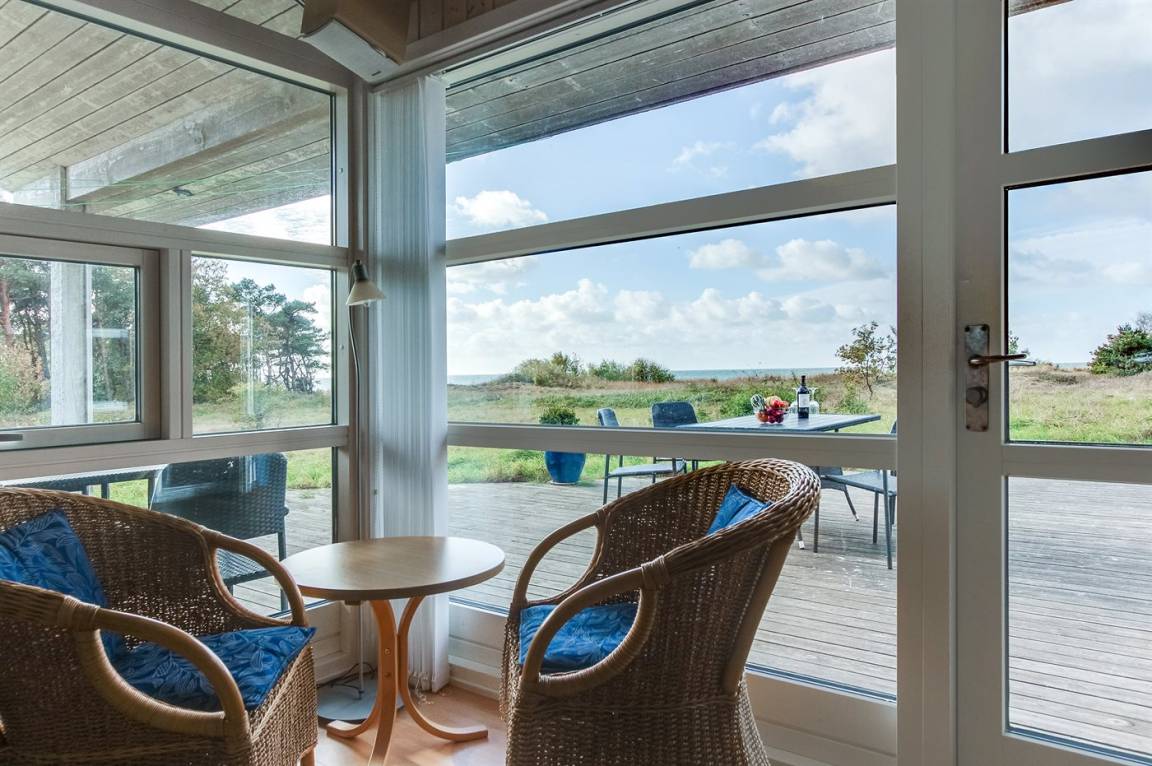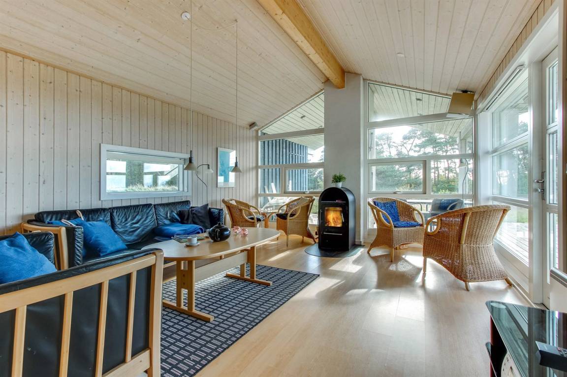 Prachtvolles Ferienhaus aus Holz mit exklusiver Einrichtung, 2002 aufgeführt. Das Haus liegt auf einem prachtvollen mit Heide bewachsenen Naturgrundstück in ruhiger Umgebung direkt an der Ostsee. Sowohl vom Haus als auch vom Grundstück können Sie das Meer und dessen, je nach Wetterlage, veränderliche Schattierung betrachten. Das große offene sowie überdachte Terrassenareal mit Gartenmöbeln und eingebautem Grill bietet gute Möglichkeiten zum Sonnenbaden. Innen sind die Wände teils weiß verputzt und teils mit Holz verkeidet. Helle Holzdecken. Teils Holz-, teils Klinkerböden. Um ein allergikerfreundliches Innenklima zu erhalten ist es nicht erlaubt im Haus zu rauchen. Herrliches Badezimmer mit kombiniertem türkischen Dampfbad/Sauna, 2-Pers. Whirlpool, Dusche und beheizbarem Klinkerboden. Zusätzliches Badezimmer ebenfalls mit Duschnische und Fußbodenheizung. Waschküche mit Waschmaschine und Wäschetrockner. Die moderne Küche ist u. a. mit Geschirrspüler, Mikrowelle, Tiefkühlfach, Herd mit Ceran-Feld und Umluftofen ausgestattet. Panoramablick vom hellen und geschmackvoll eingerichteten Wohnzimmer mit Kaminofen, Stereoanlage mit CD-Spieler und Sorroundsound-System sowie Heimkino in Form eines 40" TVs mit Satellitenanschluss für deutsche und skandinavische Programme und DVD-Spieler. Büro mit kostenloser, kabelloser Internetverbindung (eigener Computer muss mitgebracht werden). Hier können Sie in entspannender Umgebung arbeiten und gleichtzeitig Ihren Urlaub genießen. Das Haus ist mit 4 geräumigen Schlafzimmern eingerichtet, alle mit Doppelbett. 2 der Schlafzimmer enthalten außerdem 32" TV. Zur weiteren Austattung des Hauses gehören Kinderbett und Kinderhochstuhl. Das Haus liegt dicht am idyllischen Fischerort Sømarken mit kleinen Fischerbooten, Räucherei und Fahrradvermietung. 18-Loch Golfplatz und viele andere Aktivitätsmöglichkeiten zum Greifen nahe.