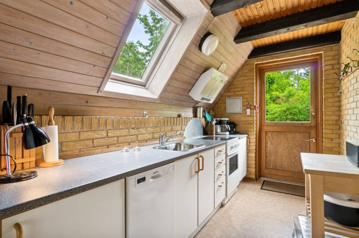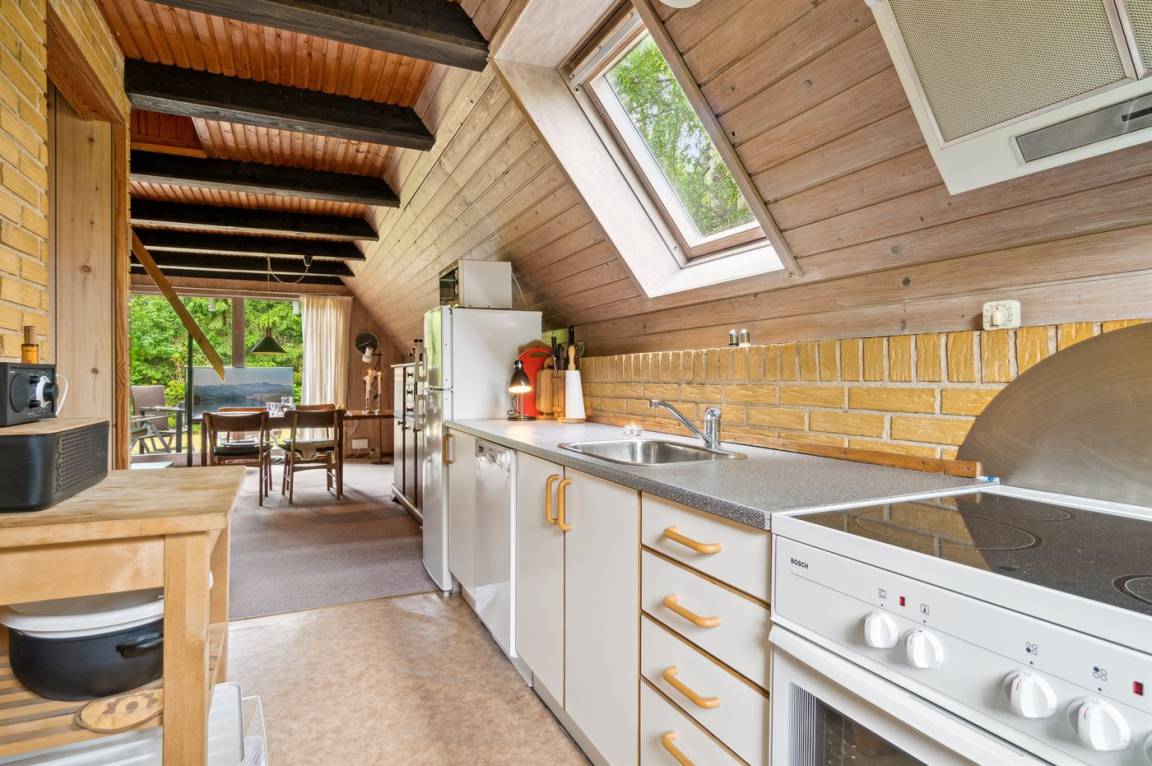 Ferienhaus auf 2 Etagen, gelegen am Ende einer kleinen Ferienhausstraße zusammen mit dem Nachbarhaus. Im Erdgeschoss gibt es ein Schlafzimmer und zwei Schlafzimmer im 1. Stock. Neue Küche im Jahr 2024. In der Nähe findet man einen Sandstrand, an dem man das Badewasser genießen kann. Kadeau ist Bornholms Michelin-Restaurant und liegt in diesem herrlichen Ferienhausgebiet an der Küste, wo man auch ein Stück weiter das Bakka-Räucherei besuchen kann, die in der Saison jeden Tag Hering räuchert. In Pedersker gibt es eine Brugs für tägliche Einkäufe.