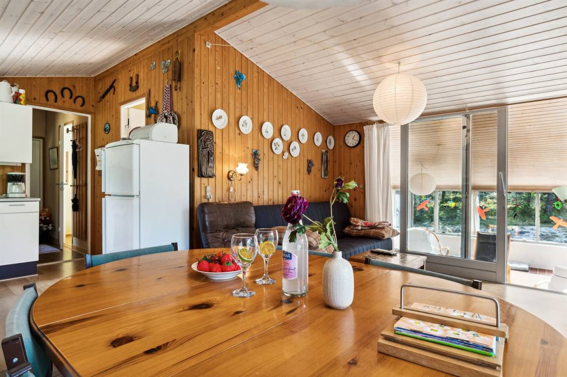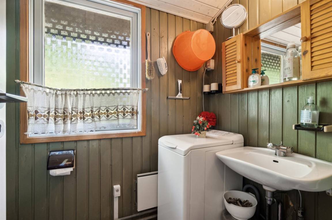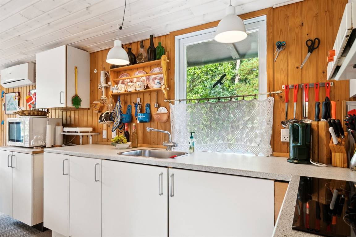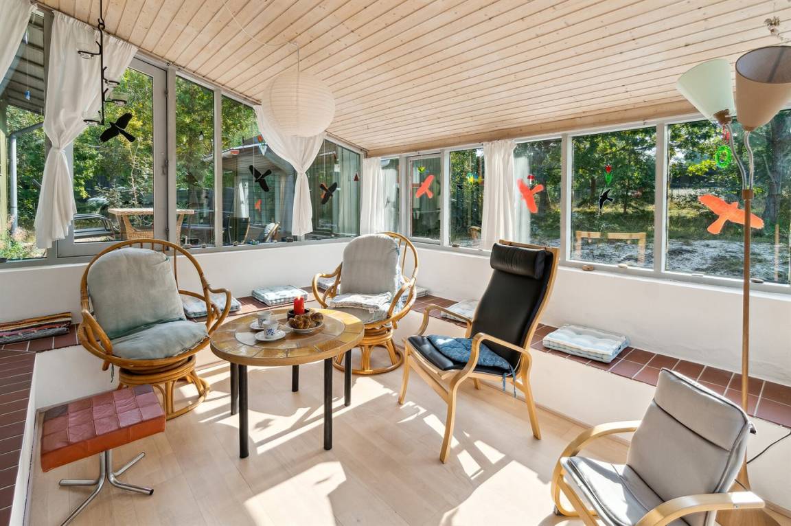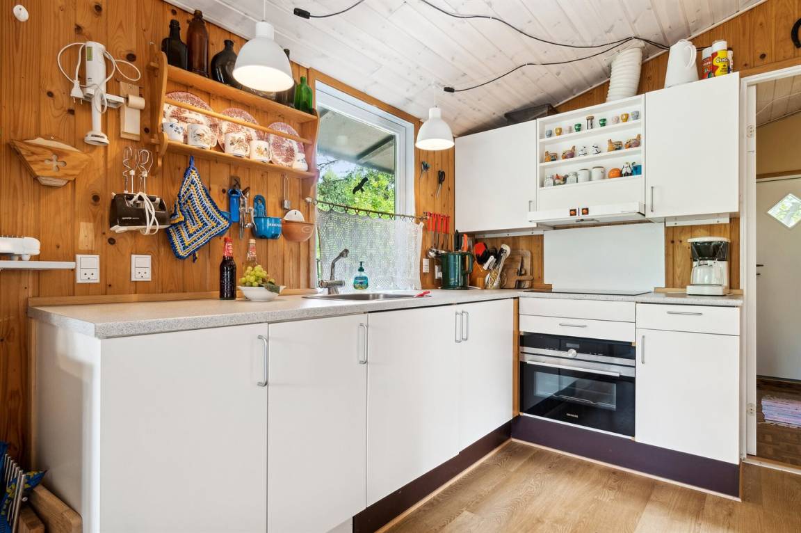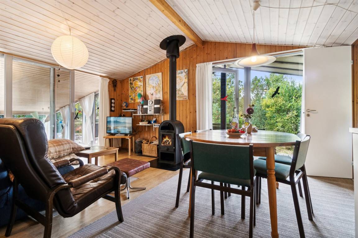 Der Besitzer hat dem Inneren des Ferienhauses mit vielen lustigen und etwas kuriosen Raritäten auf den Regalen seinen eigenen Stempel aufgedrückt. Gemischte Möblierung. Es gibt eine neuere Küche und ein renoviertes Badezimmer. Ein interessantes Wintergarten, das teilweise in den Boden gegraben ist, bietet einen besonderen Blick auf die Natur.