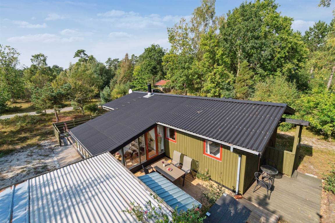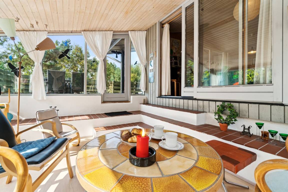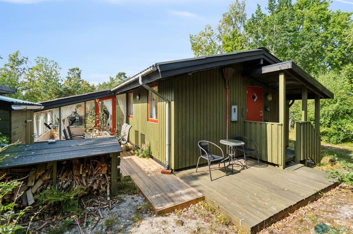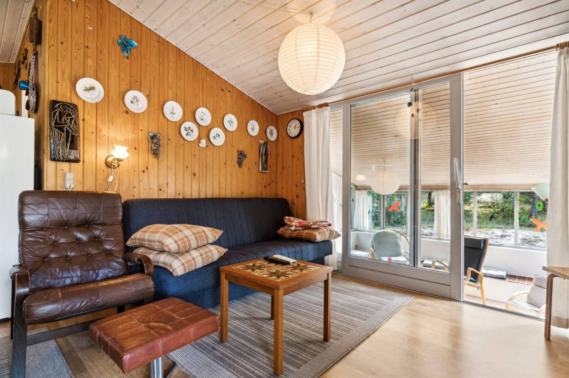 Gut gelegenes, älteres Ferienhaus auf einem Naturgrundstück, das leicht bewachsen ist, sodass man die Terrassen in Ruhe genießen kann. Das Gebiet ist kinderfreundlich mit einem gemeinsamen Spielplatz und einem schönen Sandstrand.