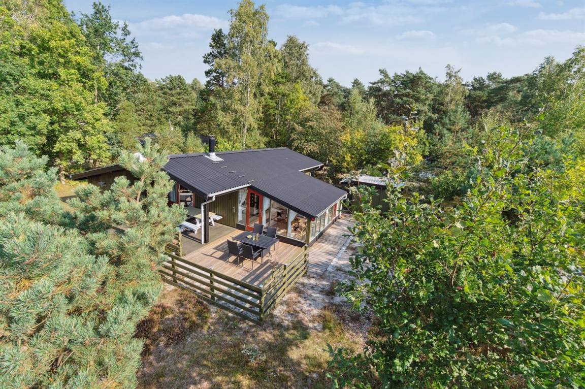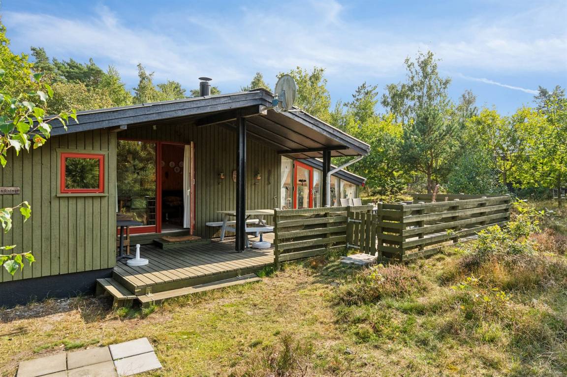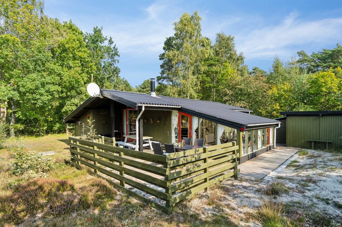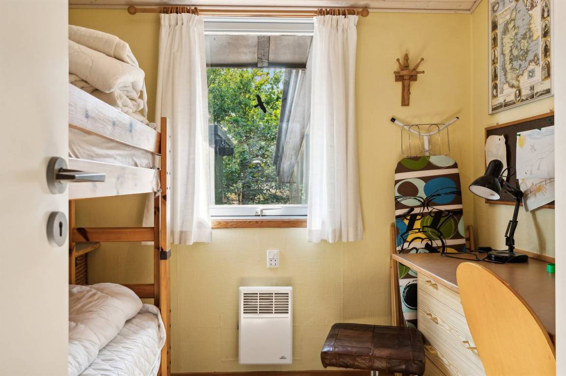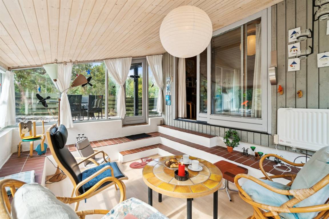 Gut gelegenes, älteres Ferienhaus auf einem Naturgrundstück, das leicht bewachsen ist, sodass man die Terrassen in Ruhe genießen kann. Das Gebiet ist kinderfreundlich mit einem gemeinsamen Spielplatz und einem schönen Sandstrand.
