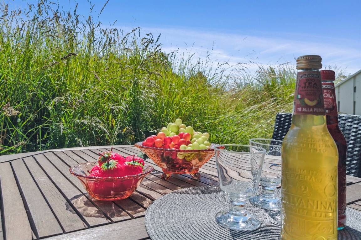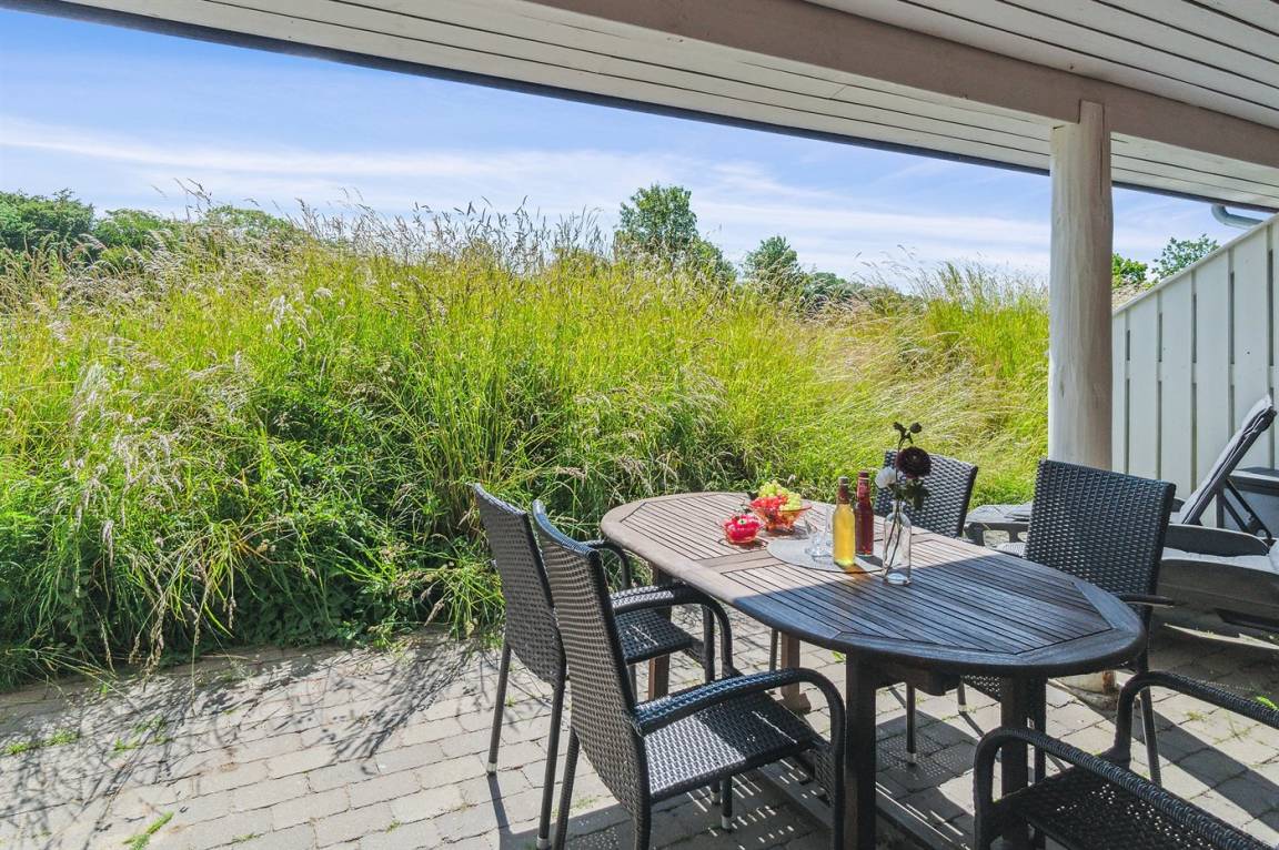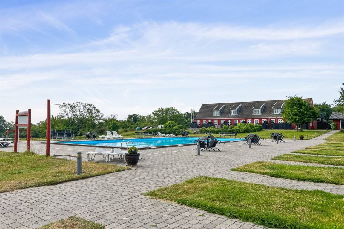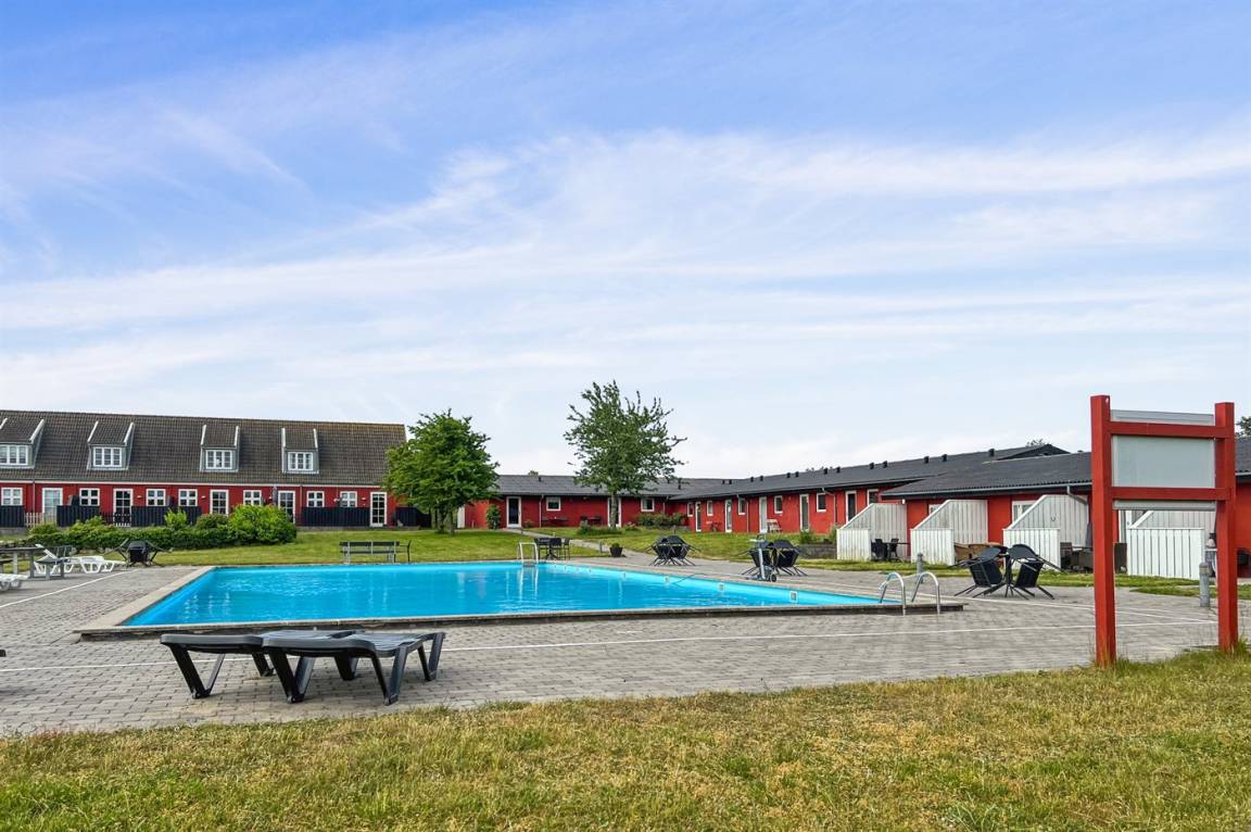 Vor der Ferienwohnung gibt es eine kleine Terrasse, sodass man das Leben im Gemeinschaftspool beobachten kann, der sicherlich zu einem Bad einlädt. Der Pool ist vom 15.6. bis 15.9. beheizt. Zur gemeinsamen Nutzung gibt es in Dams på Bakken eine Petanquebahn, ein Trampolin, Fußballtore und eine kleine Feuerstelle.