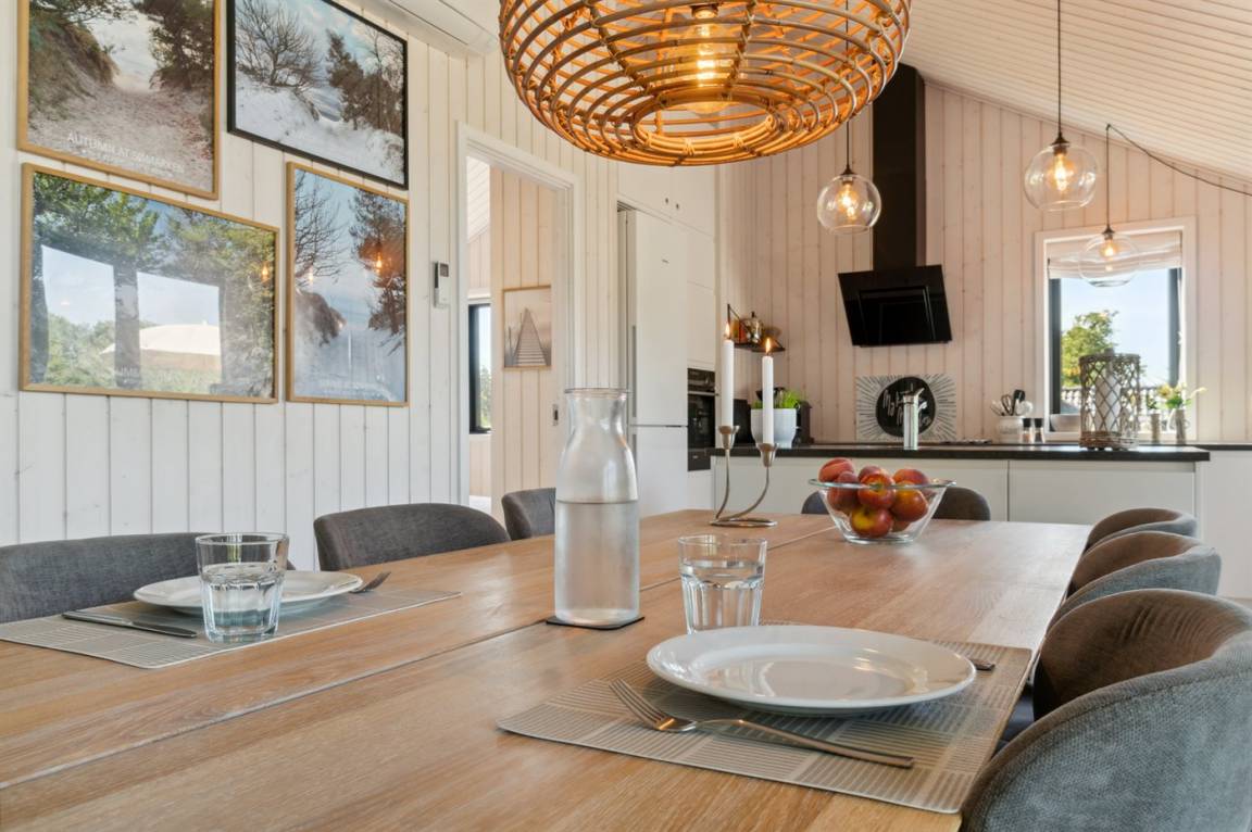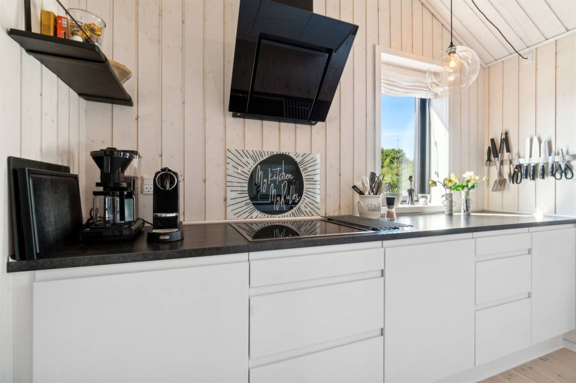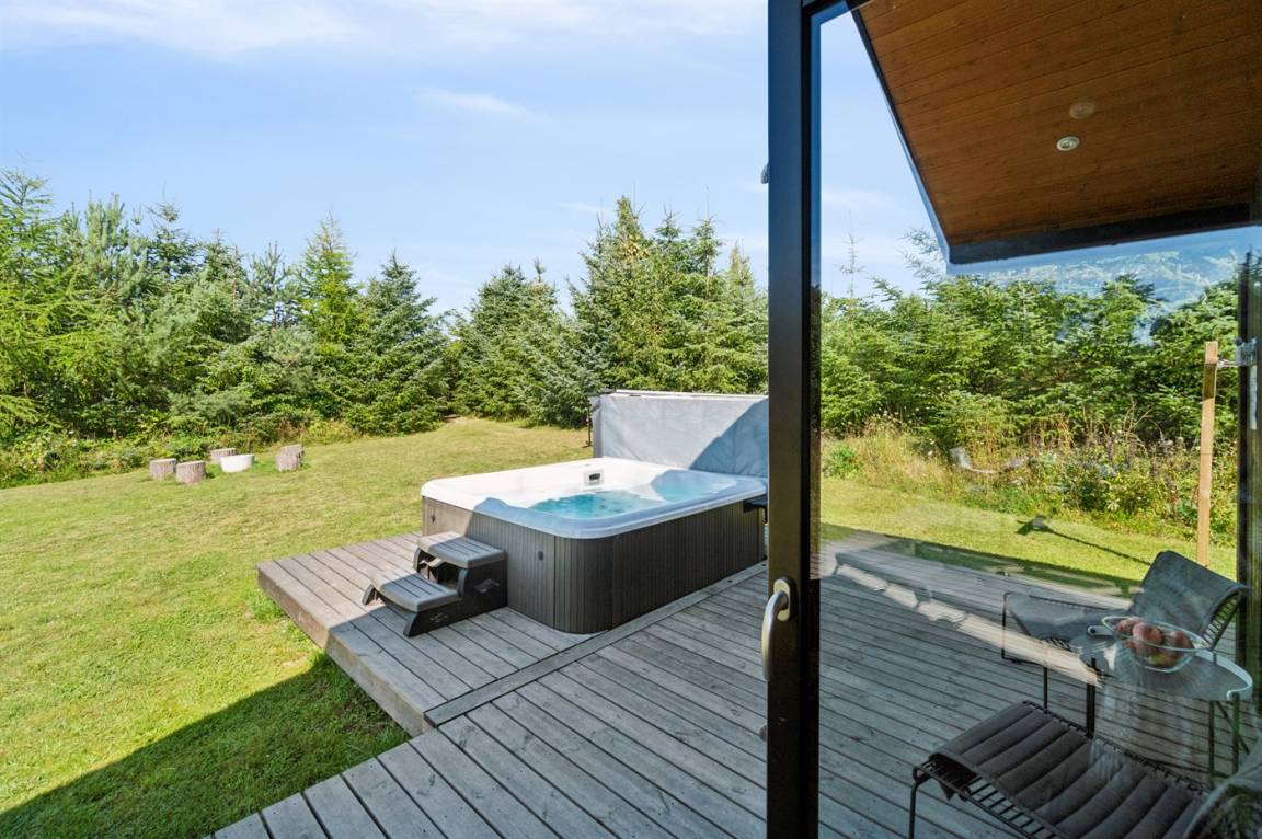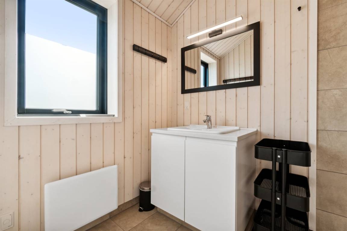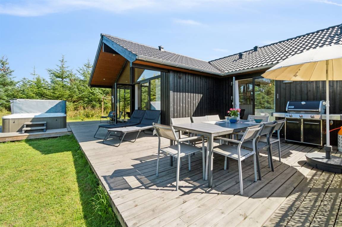Das Ferienhaus befindet sich auf einem abgeschirmten Grundstück, sodass man vor dem Wind geschützt ist, während man sich im großen Außen-Whirlpool auf der Terrasse entspannt. Die langen Abende kann man in Ruhe auf der teilweise überdachten Terrasse oder im großen, hellen Wohnbereich genießen. Moderne skandinavische Einrichtung, die darauf ausgelegt ist, Gemütlichkeit im Kreise der Familie zu schaffen. Die Küche ist funktional und modern, und es gibt zwei schöne Badezimmer.
