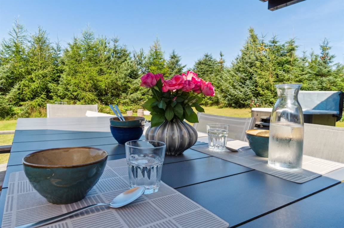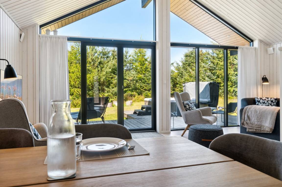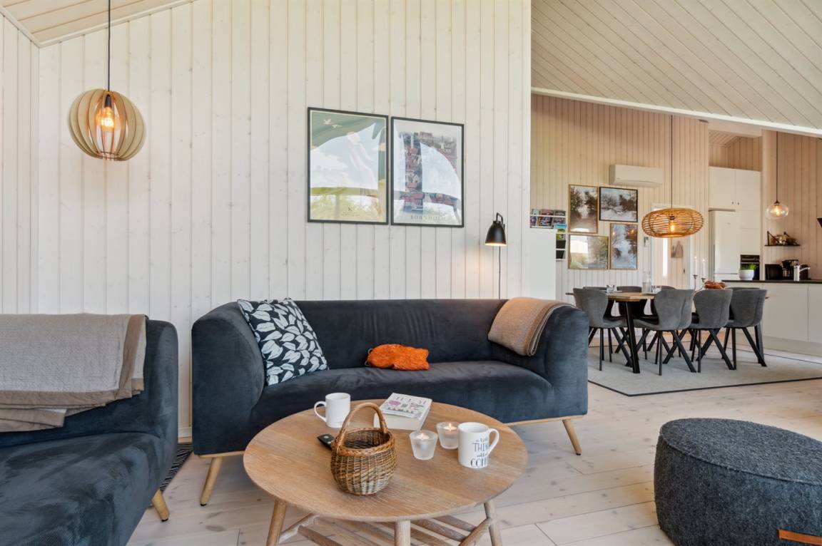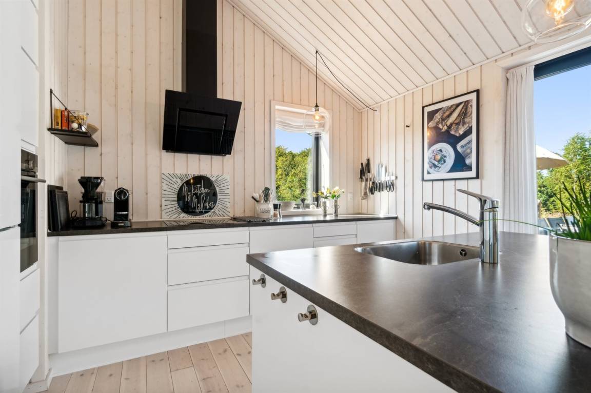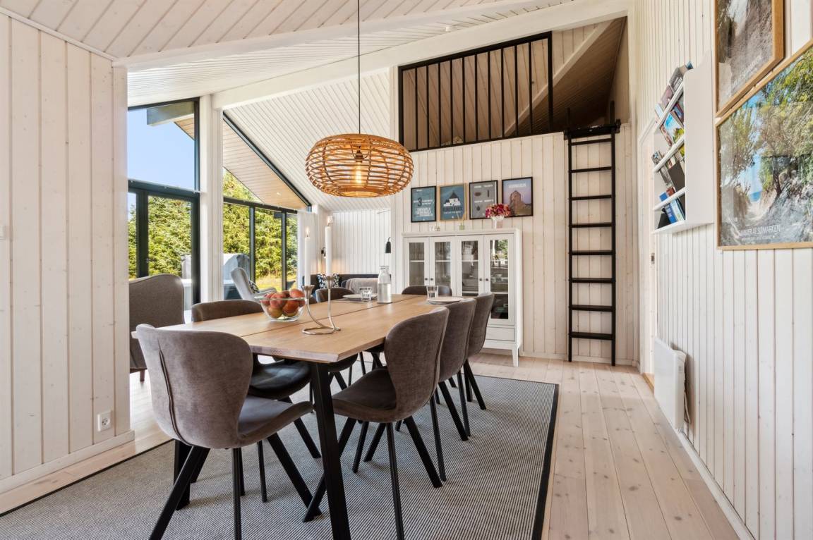 Das Ferienhaus befindet sich auf einem abgeschirmten Grundstück, sodass man vor dem Wind geschützt ist, während man sich im großen Außen-Whirlpool auf der Terrasse entspannt. Die langen Abende kann man in Ruhe auf der teilweise überdachten Terrasse oder im großen, hellen Wohnbereich genießen. Moderne skandinavische Einrichtung, die darauf ausgelegt ist, Gemütlichkeit im Kreise der Familie zu schaffen. Die Küche ist funktional und modern, und es gibt zwei schöne Badezimmer.