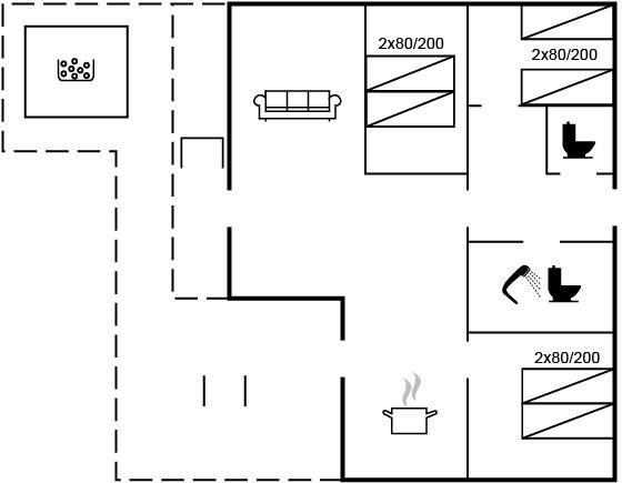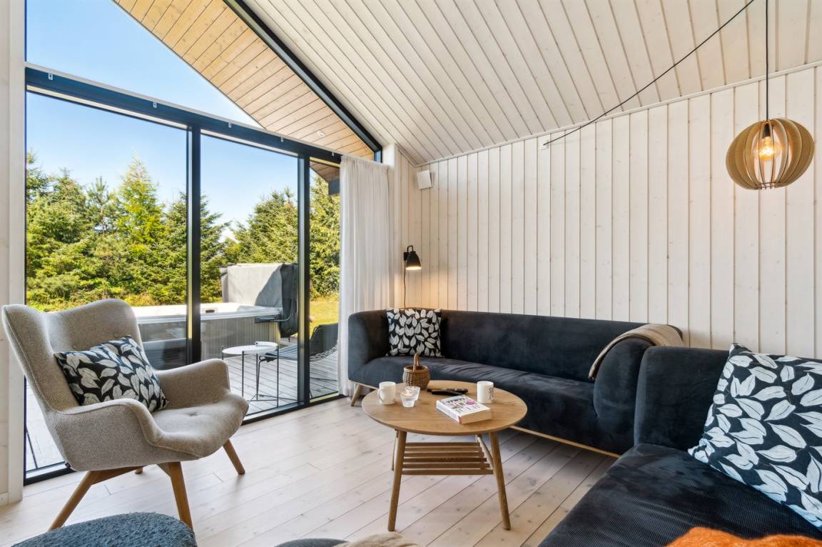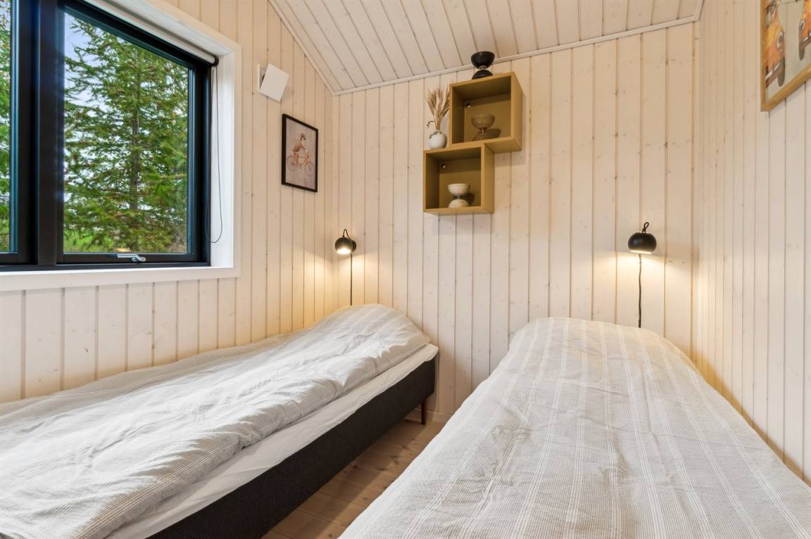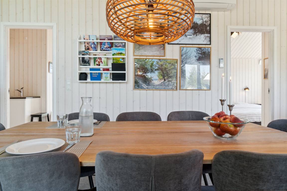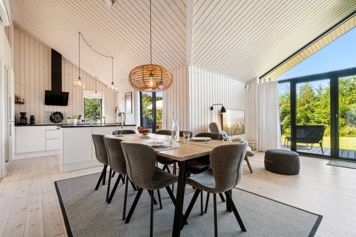 Das Ferienhaus befindet sich auf einem abgeschirmten Grundstück, sodass man vor dem Wind geschützt ist, während man sich im großen Außen-Whirlpool auf der Terrasse entspannt. Die langen Abende kann man in Ruhe auf der teilweise überdachten Terrasse oder im großen, hellen Wohnbereich genießen. Moderne skandinavische Einrichtung, die darauf ausgelegt ist, Gemütlichkeit im Kreise der Familie zu schaffen. Die Küche ist funktional und modern, und es gibt zwei schöne Badezimmer.