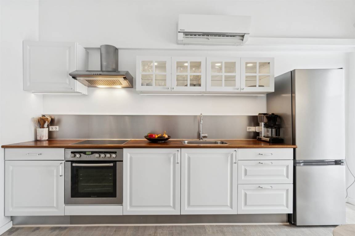 KücheDie Küche ist mit Kühlschrank ausgestattet. Außerdem gibt es 4 Keramik-Kochfelder, Umluftofen.