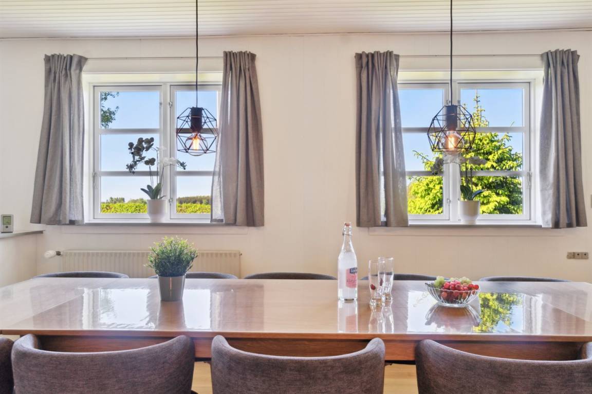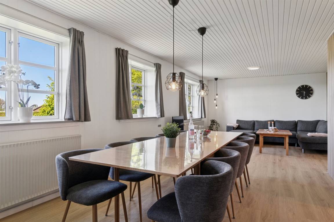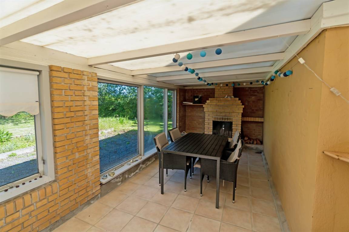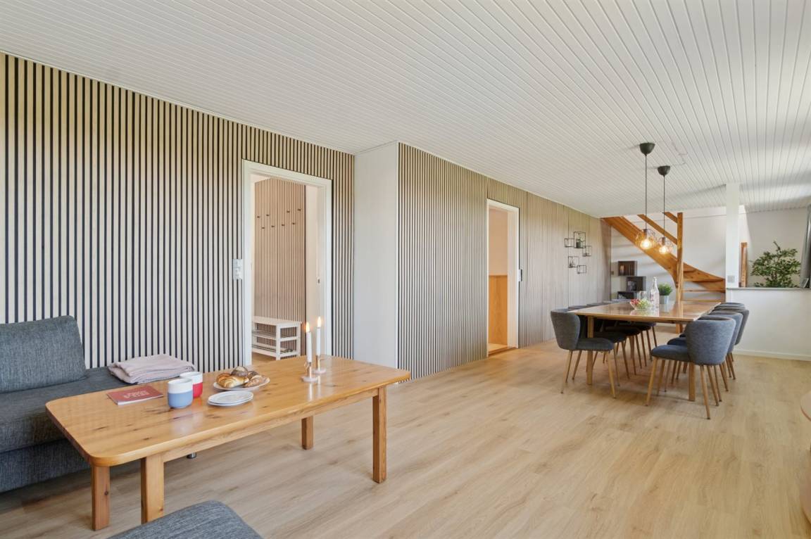 Das Haus ist ganzjährig isoliert und von einem großen, abgeschirmten Gartengrundstück umgeben. Es bietet viel Platz für alle, sodass zwei Familien oder mehrere befreundete Paare hier einen gemeinsamen Urlaub verbringen können. Im sehr großen Wohnzimmer mit weißen Wänden und schönen Holzverkleidungen gibt es Platz für alle um den langen Tisch, wo man die Mahlzeiten gemeinsamen genießen kann. Es besteht auch die Möglichkeit gemütliche Stunden im Wintergarten zu verbringen.