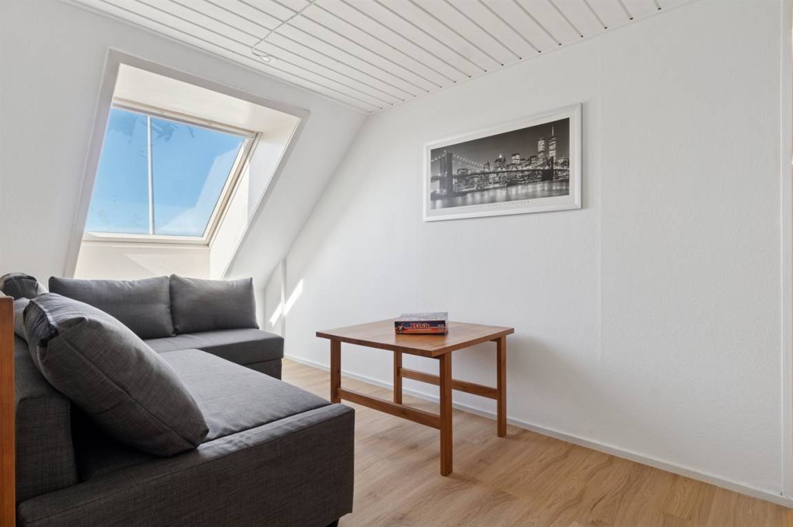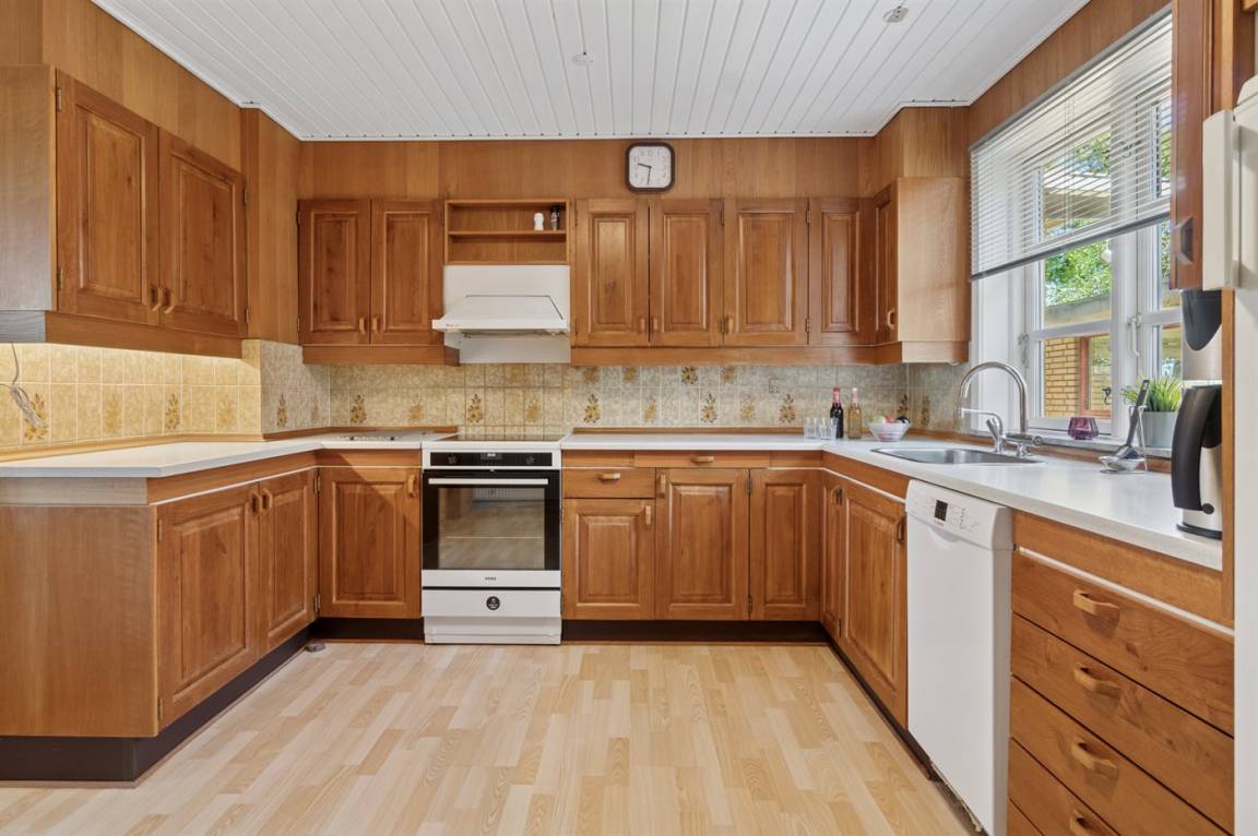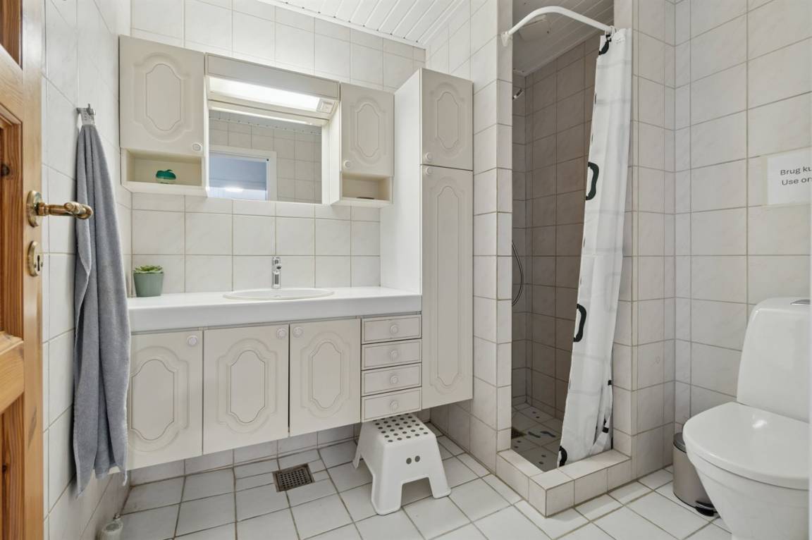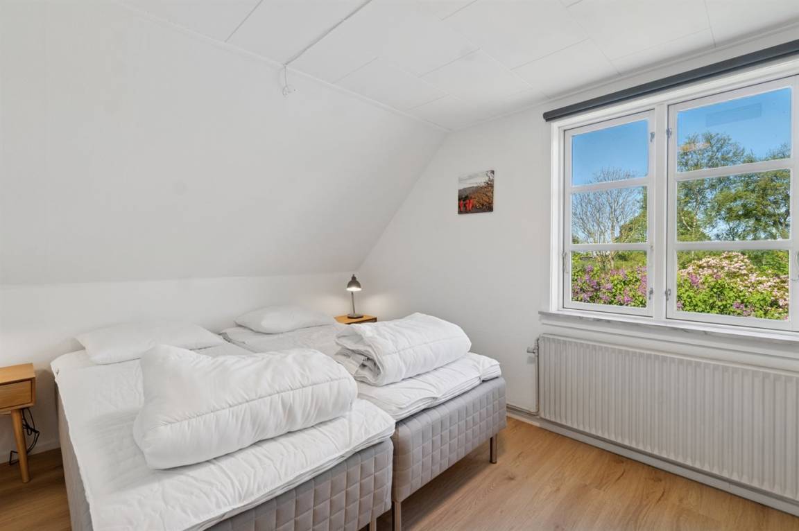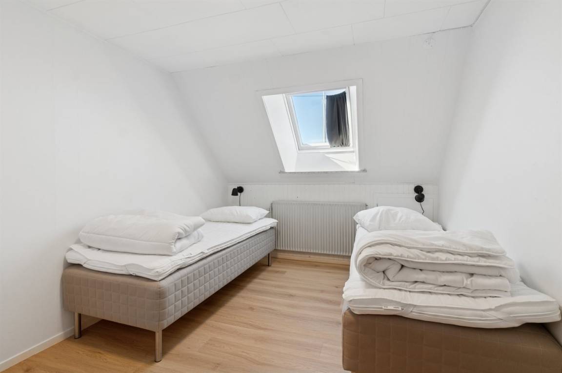 Die Tischler-Küche ist gut ausgestattetet - auch hier gibt es viel Platz, und man kann gemeinsam leckere Mahlzeiten zubereiten. Das Badezimmer befindet sich im Erdgeschoss. Auch eines der Schlafzimmer liegt im Ergeschoss und die drei anderen liegen im Obergeschoss. Dort findest du auch einen kleinen Aufenthaltsbereich mit bequemen Möbeln – ideal, wenn du dich tagsüber einmal zurückziehen möchtest.