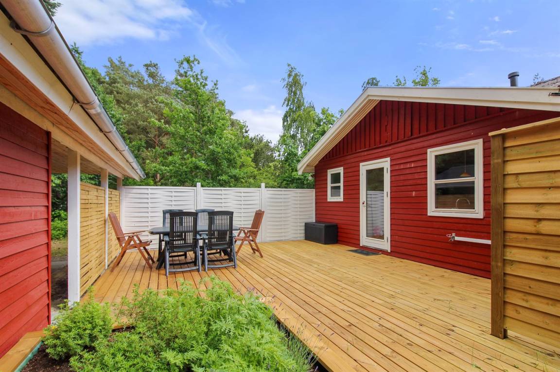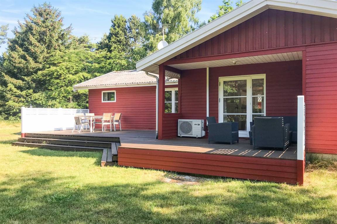 DraußenDie Ferienunterkunft liegt auf einem 2500 m² großen Naturgrundstück. Die Entfernung zum Meer beträgt 300 m. Die nächste Einkaufsmöglichkeit liegt 4500 m entfernt. Es steht ein 40 m² Terrassenareal zur Verfügung. Geräteraum. Schaukel. Außendusche. Es steht ein Carport zur Verfügung. Parkplatz auf dem Grundstück.