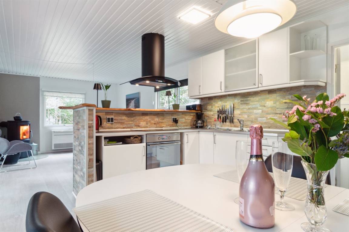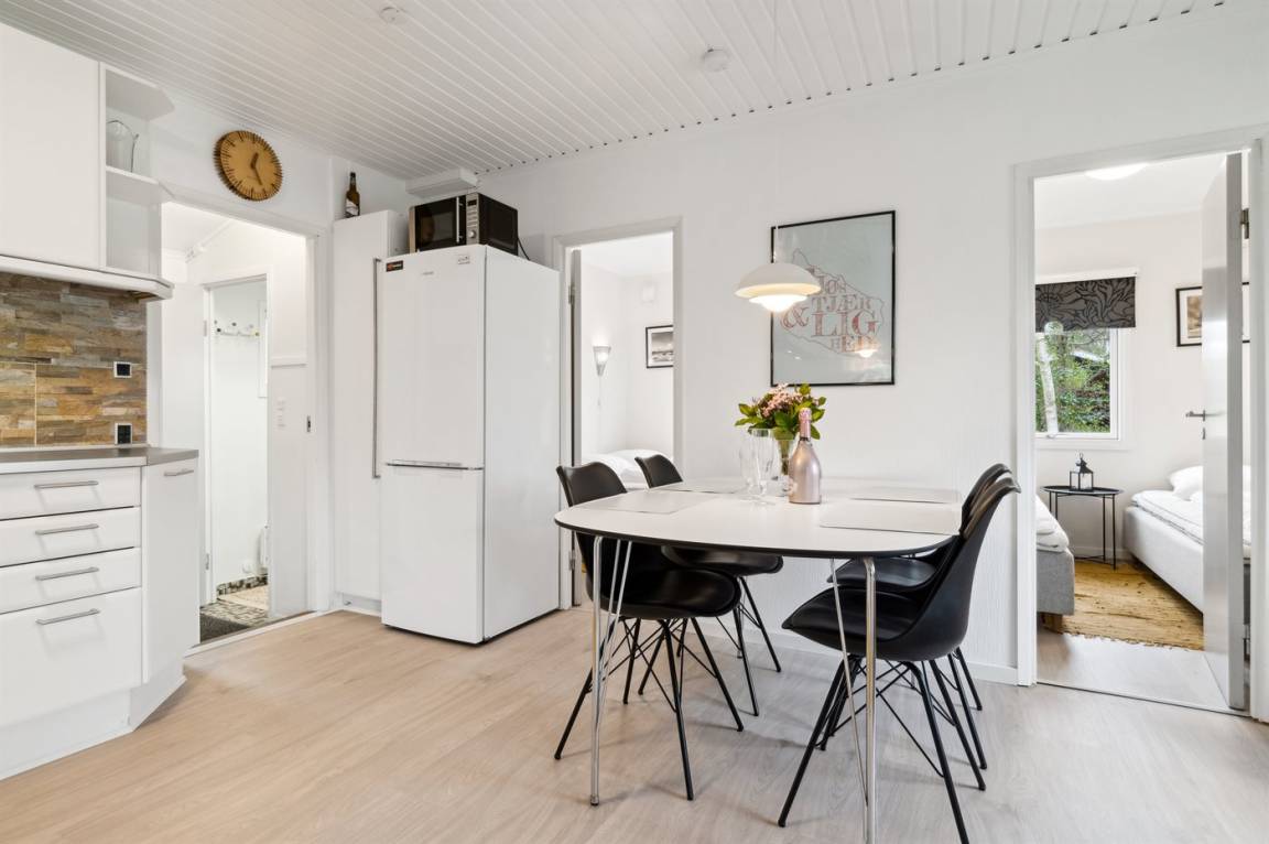 Ein besonders gepflegtes Ferienhaus mit guter Lage in einem ruhigen Ferienhausgebiet mit feinem Sandstrand. Das Haus liegt in der Nähe des Michelin-Restaurants Kadeau und es besteht die Möglichkeit, den kleinen Inselhafen Bakka Havn zu besuchen. Hier gibt es unter anderem eine Räucherei mit vielen verschiedenen Delikatessen, und in der Saison gibt es einmal pro Woche musikalische Unterhaltung.