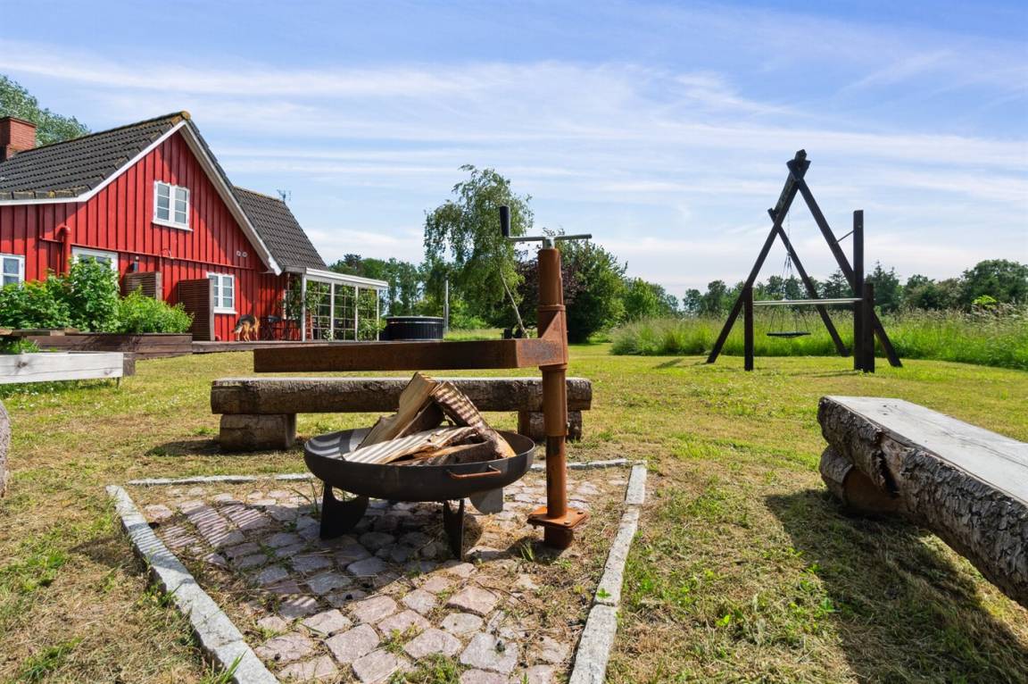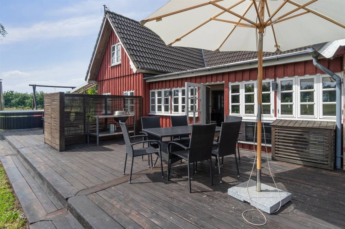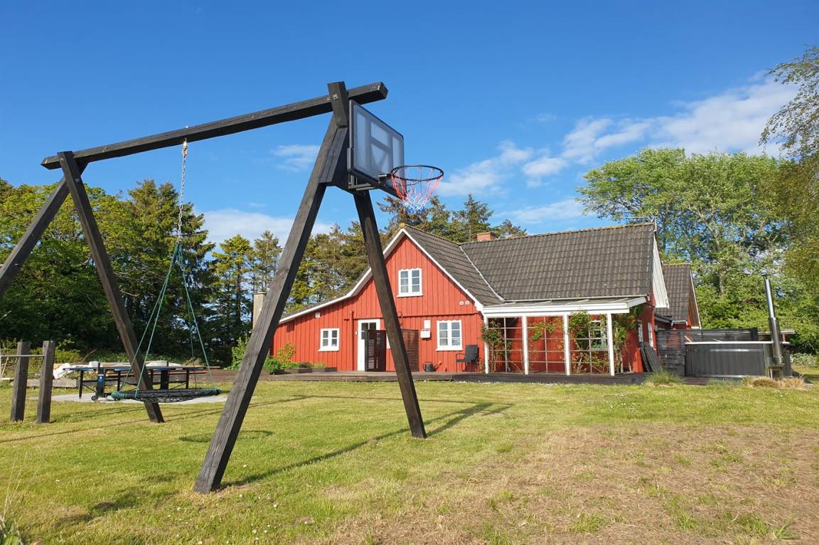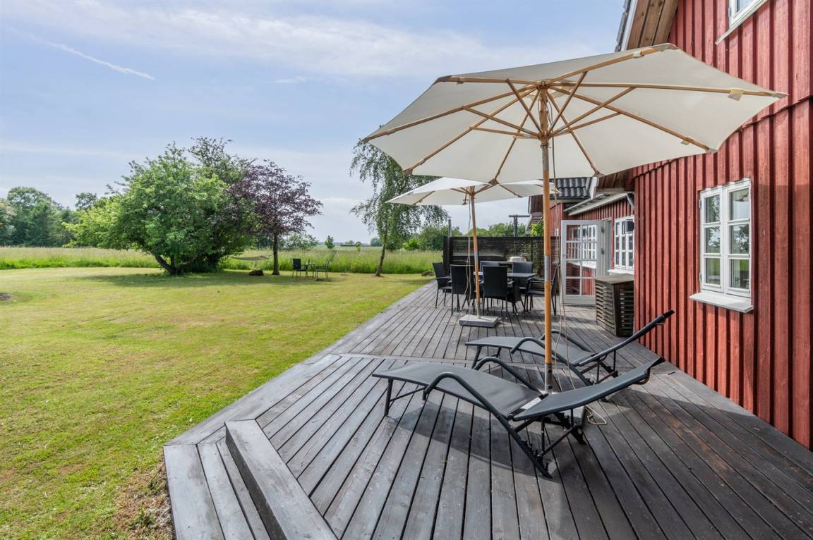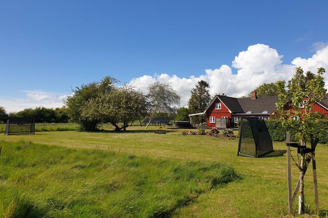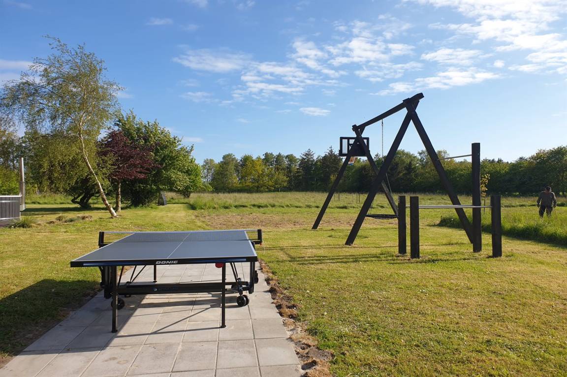 Das Ferienhaus liegt ruhig "auf dem Land" bei Aakirkeby mit Blick auf Felder und schöne Natur - oft mit Rehen, Hasen und Fasanen im Garten. Im separaten Aktivitätsraum gibt es Billard und Darts für die Aktiven, die gerne miteinander im Urlaub in edlen Spielen konkurrieren möchten. Das Grundstück ist groß, die Natur ist direkt vor der Tür und mit vielen Obstbäumen, großen Rasenflächen und wildem Naturgarten zum Nutzen für Bienen und Vögel. Hier ist weiterhin Aktivität mit Schaukeln und Trainingsgeräten angesagt, damit die Bauchmuskeln im Urlaub nicht zu kurz kommen. Zur Entspannung können die großen Holzterrassen genossen werden - sie sind teilweise überdacht.